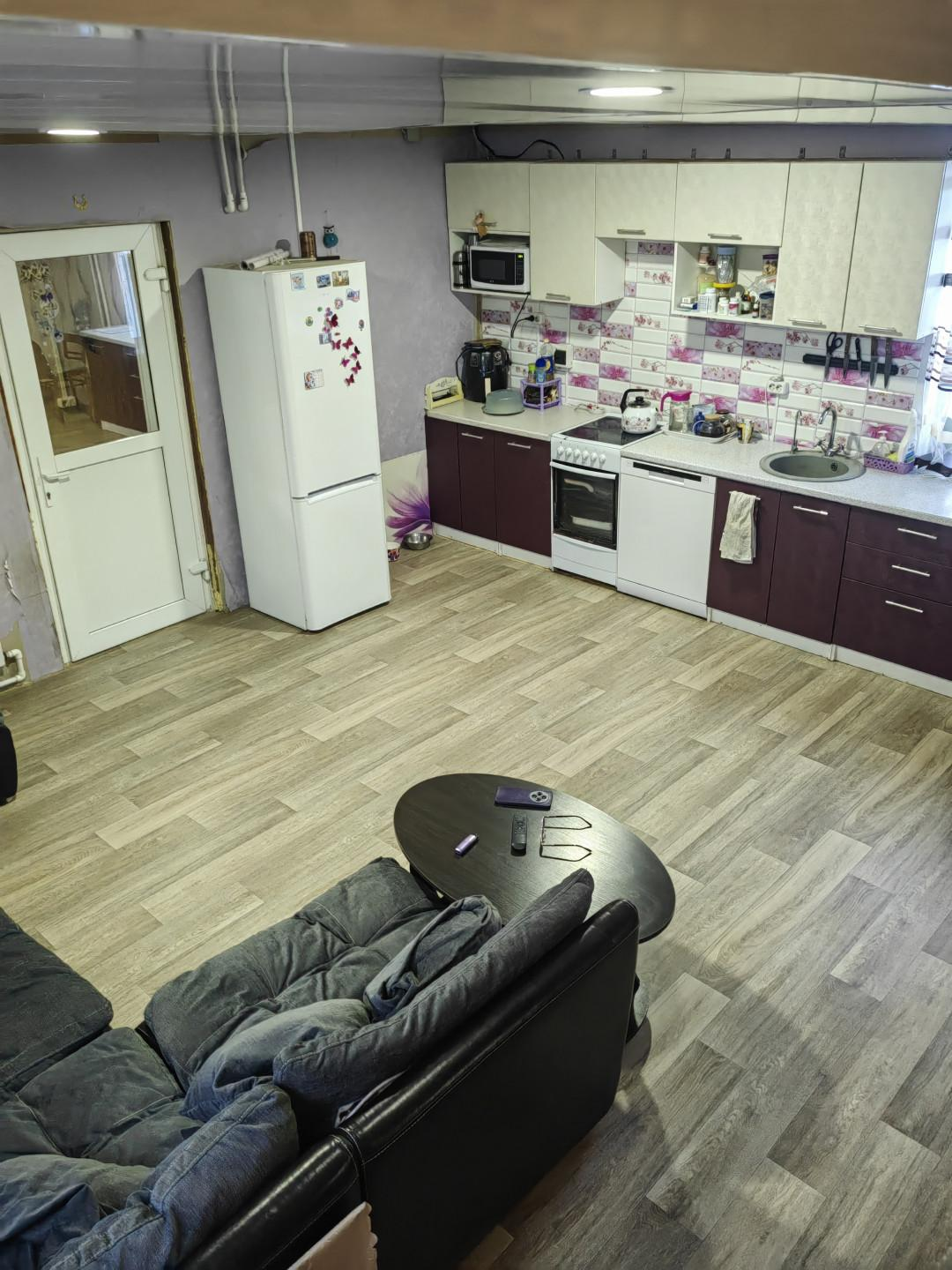 Новым хозяевам остается кухонный гарнитур ,посудомойка и электроплита. Большой модульный диван на кухне. Остальная мебель по договоренности.