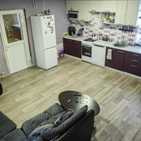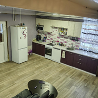 На 1 этаже дома большая кухня - столовая (31 кв. м) , спальная комната ,туалет с ванной , темная комната и веранда с котельной и кабинет.