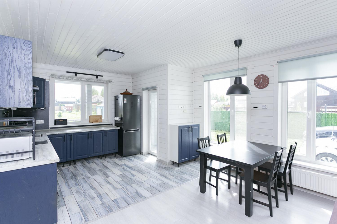 Дом очень теплый, трехкамерные стеклопакеты. Проведен интернет.