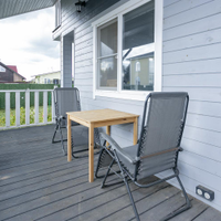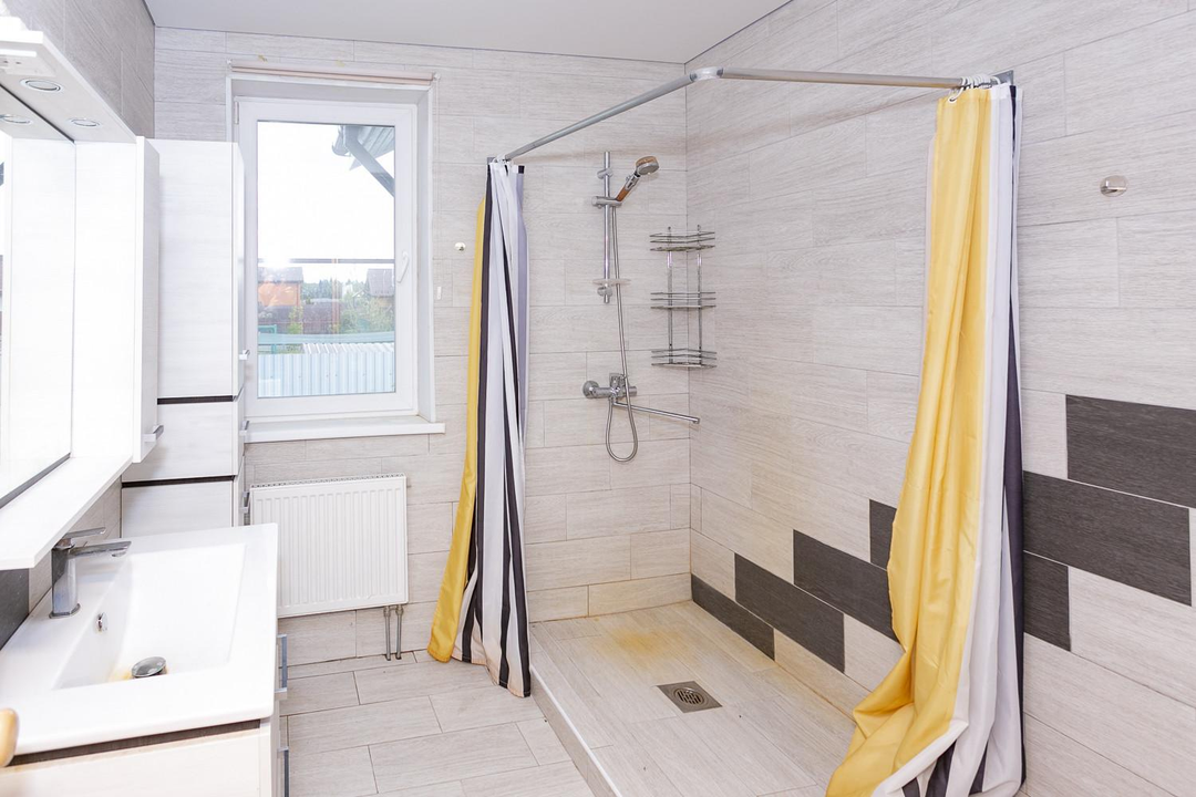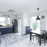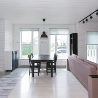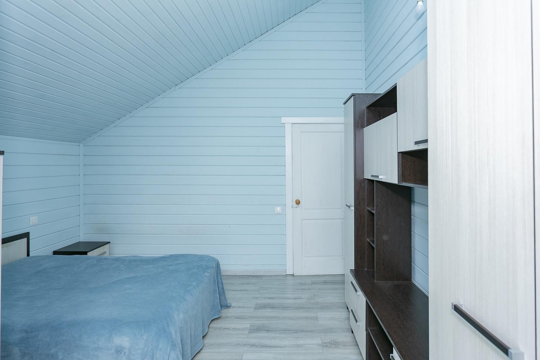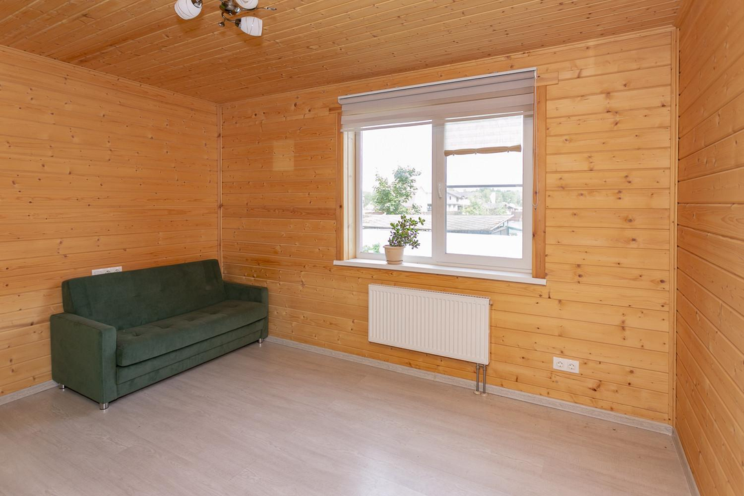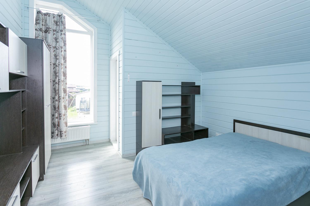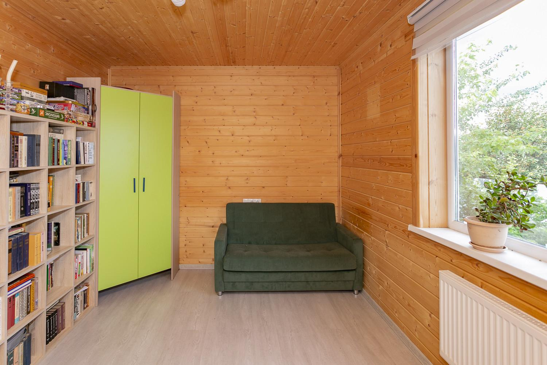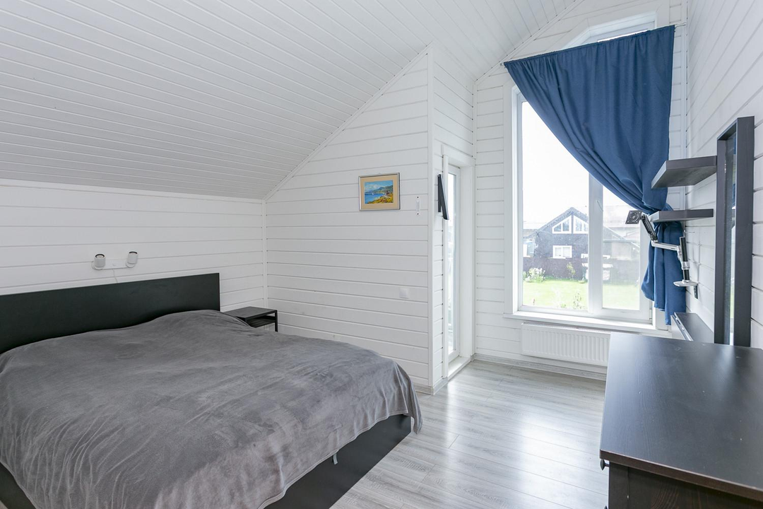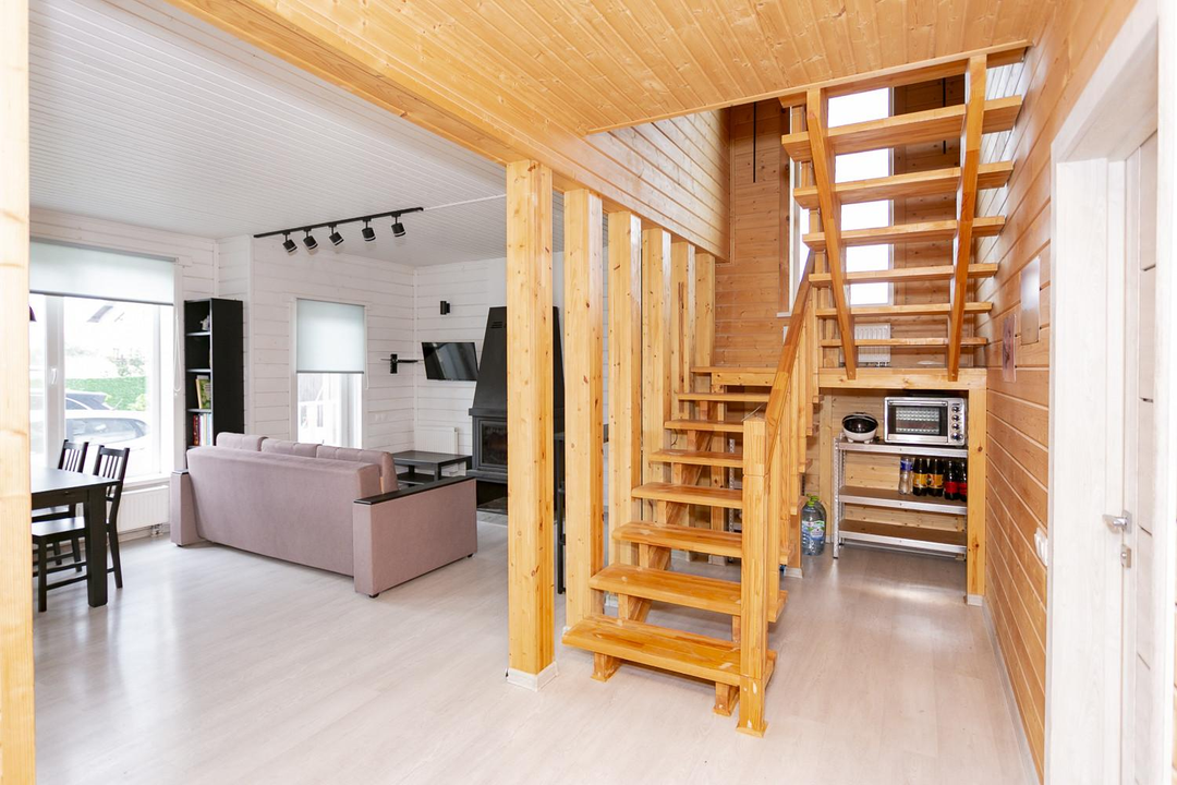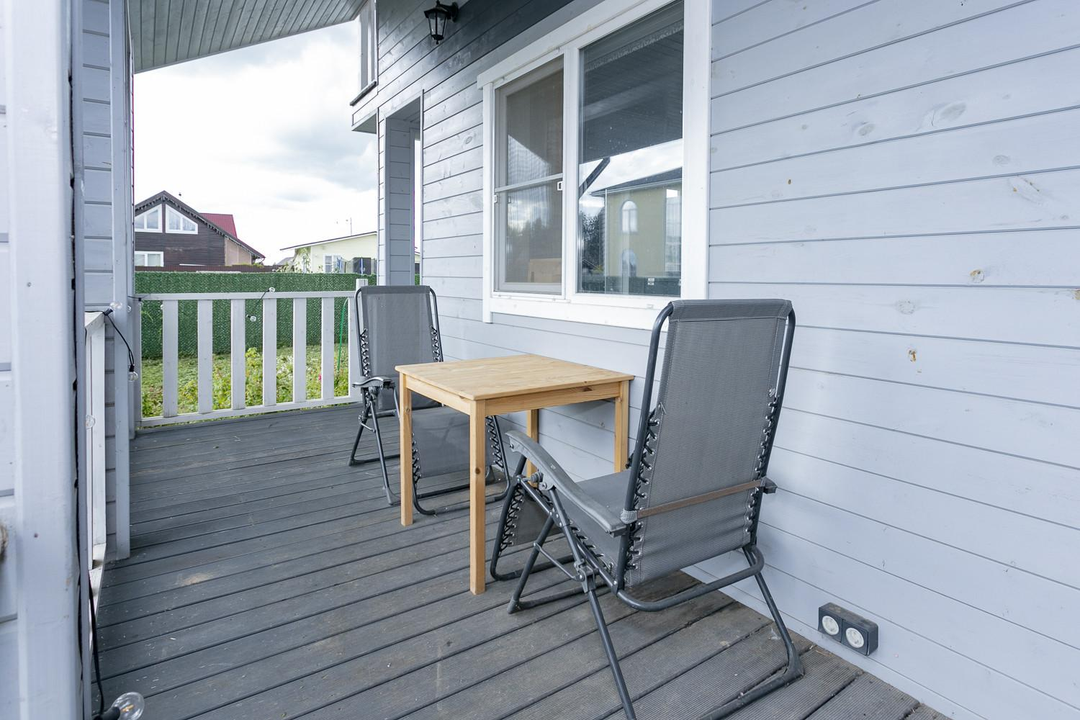 Кухня-гостиная 30 кв.м. с действующим дровяным камином, спальня, котельная (с воодоочисткой), тех.помещение (постирочная, кладовая), прихожая, санузел с душевой кабиной, постирочной и сушильной зоной. Из гостиной есть выход на террасу 21 кв.м.