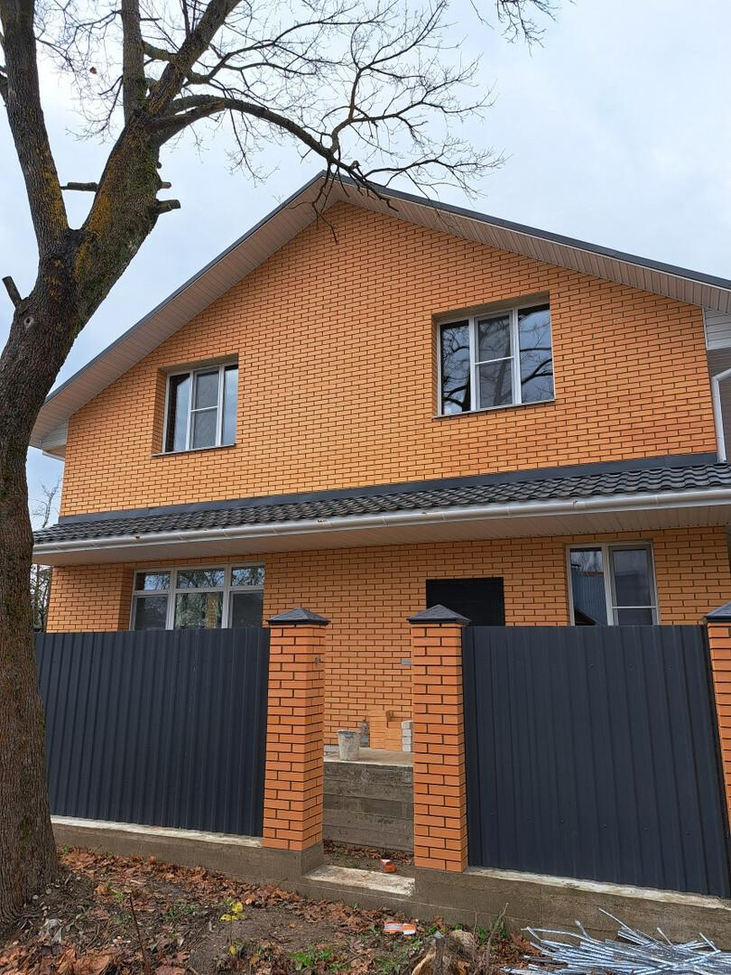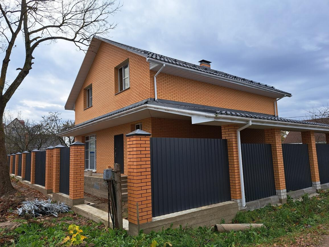 Дом 2 этажный, построен из газосиликатных блоков, обложен облицовочным кирпичем.