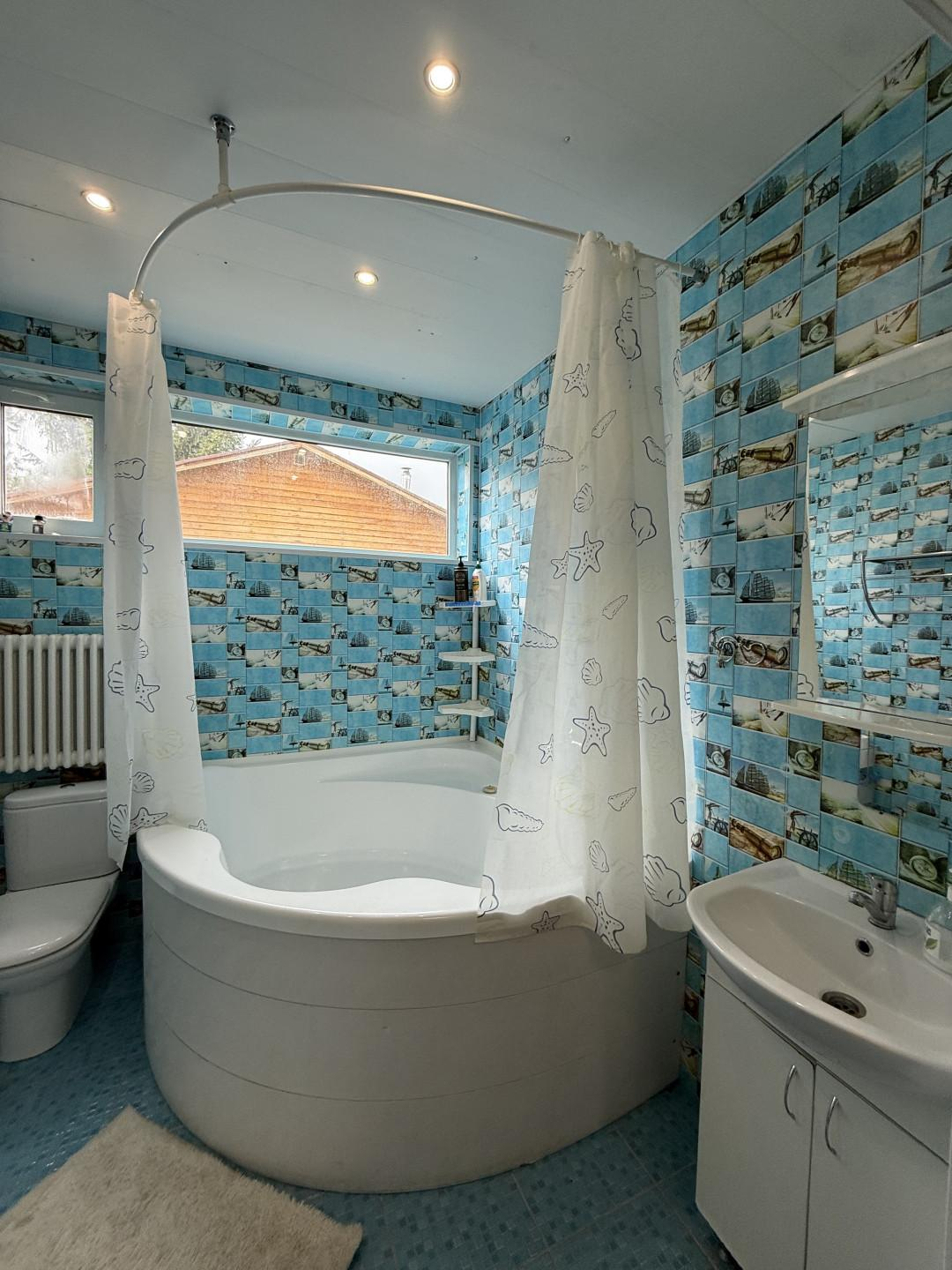 1 этаж: Гостиная-кухня 40 м, две гостевые спальни (одна может быть детской игровой), санузел, большая ванная комната.