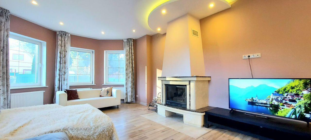 Главные плюсы:Тишина и природа: Участок на самой высокой точке с видом на лес. Поселок примыкает к санаторию «Плесково».Полная готовность: Качественный ремонт, вся техника (BOSCH, SMEG), мебель, камин и печь остаются.Вся инфраструктура: Свой газ, скважина, септик, оптоволокно, видеонаблюдение, теплые полы, вентиляция.Большая территория: Помимо дома, в собственности есть гостевой домик с коммуникациями и хозблок.