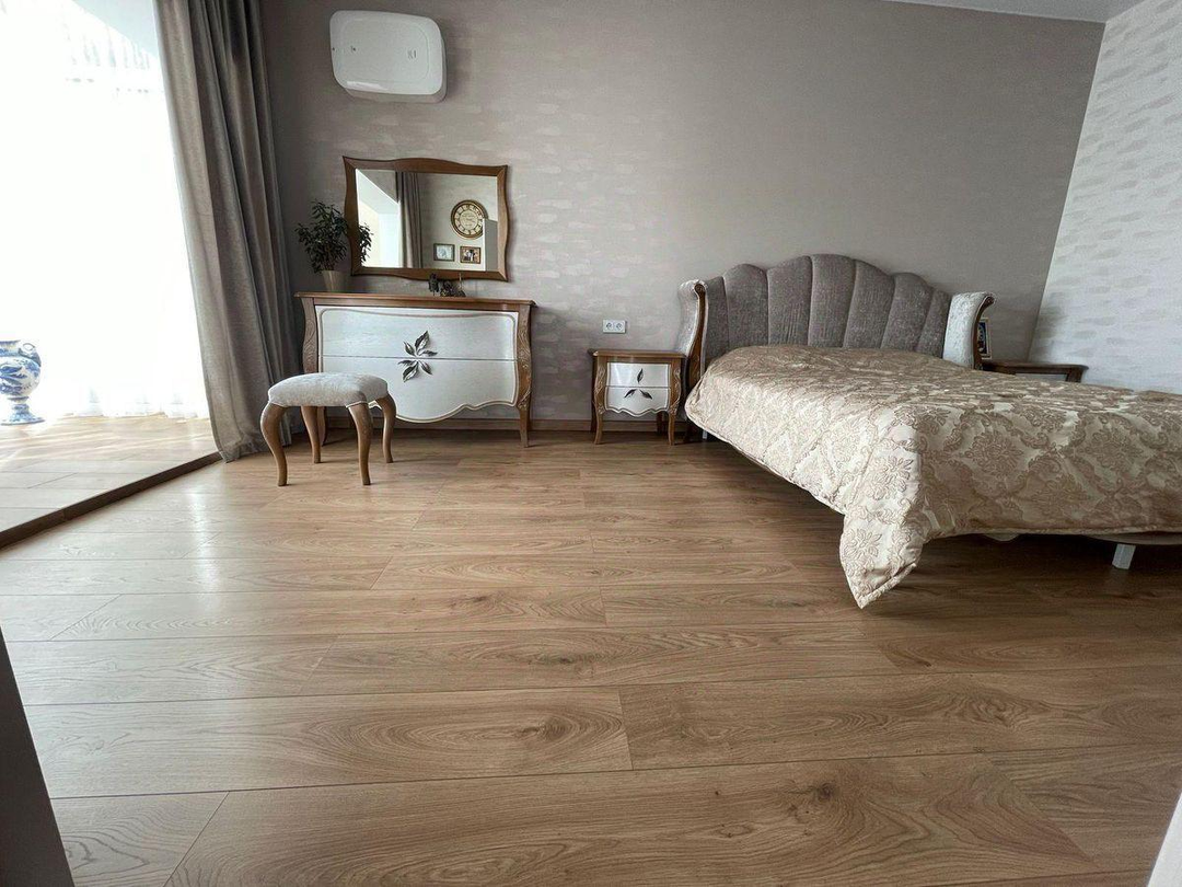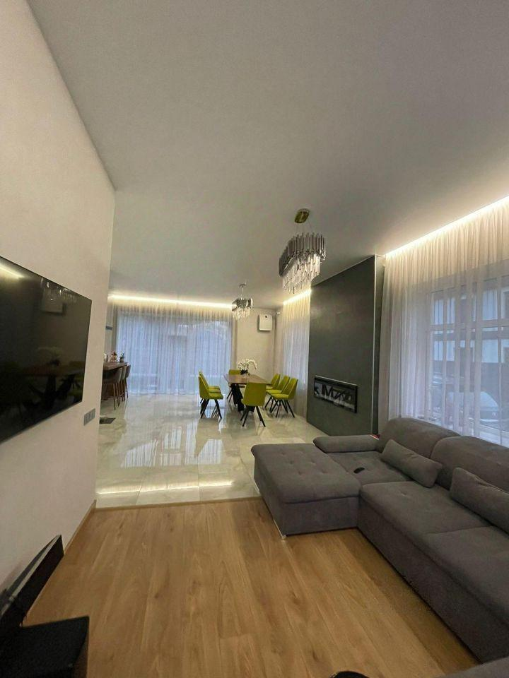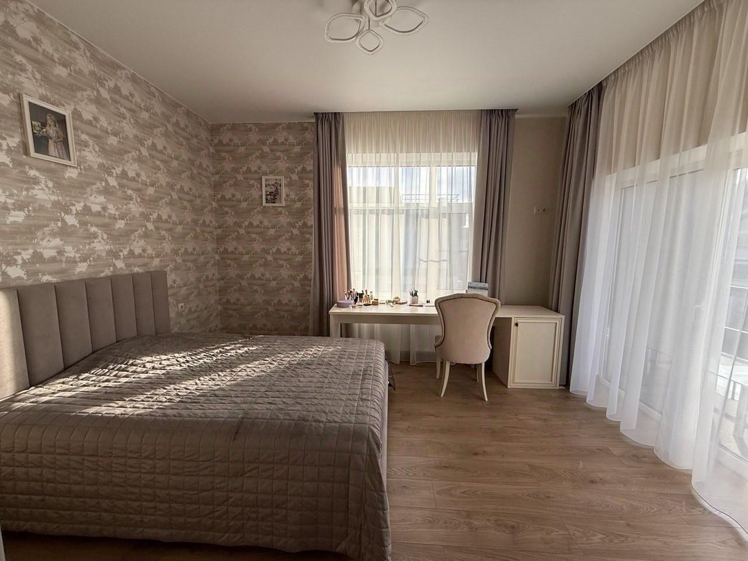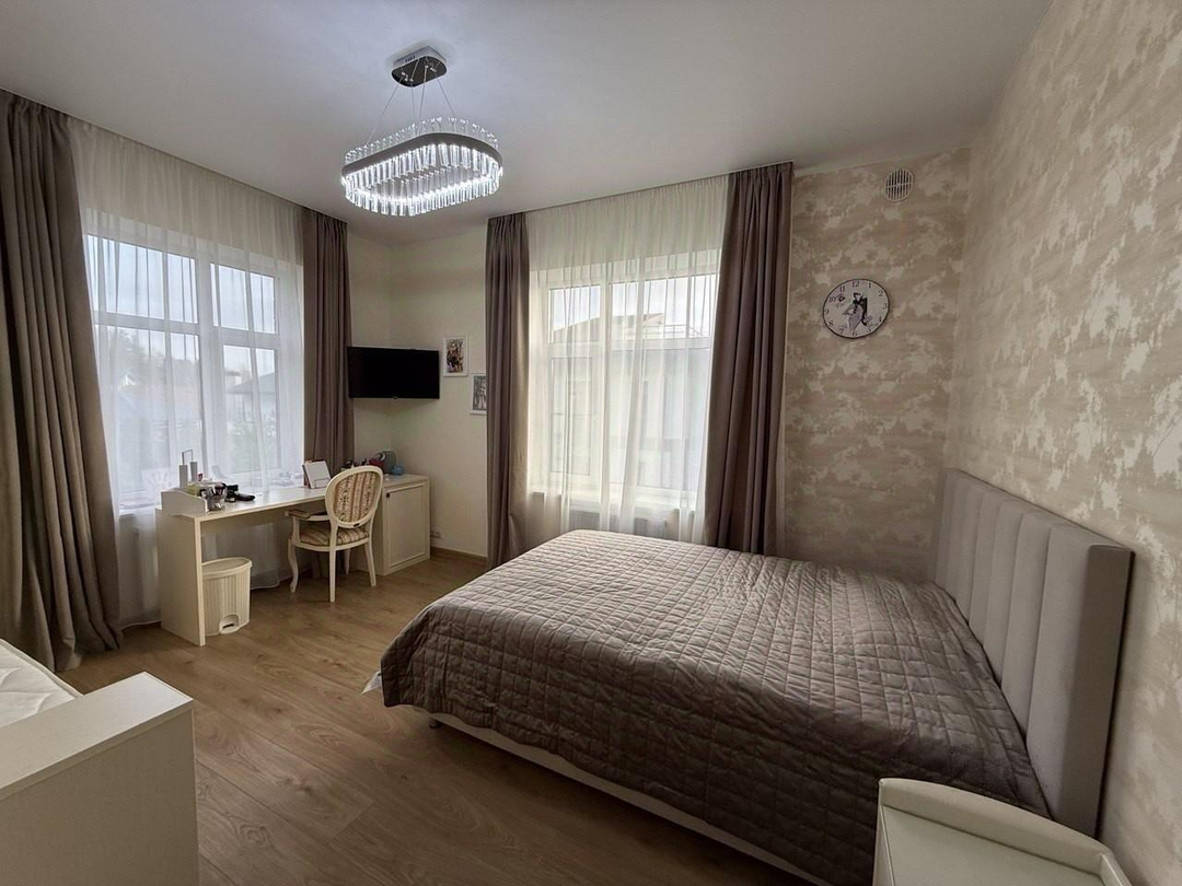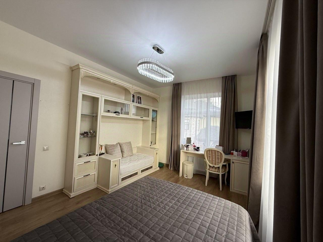 Инженерное обеспечение: газовый котел, бойлер на 150 л, многоступенчатая система очистки воды. В гостиной и главной спальне установлены бризеры - приточный очиститель воздуха с интеллектом и подогревом входящего воздуха. Установлено видеонаблюдение в гостиной с выводом на телефон. Мебель: кухонный немецкий гарнитур, остров шириной 1.8 м и полу барный стол на 3 чел. Вся встроенная техника ASKO: духовой шкаф с функцией пароварки, посудомоечная машина, холодильник. Итальянская вытяжка FABER. Дизайнерский обеденный стол из массива на 8 персон, стулья. Диван, спальный гарнитур и комоды в мастер-спальне. В детской спальне - двухъярусная кровать.
