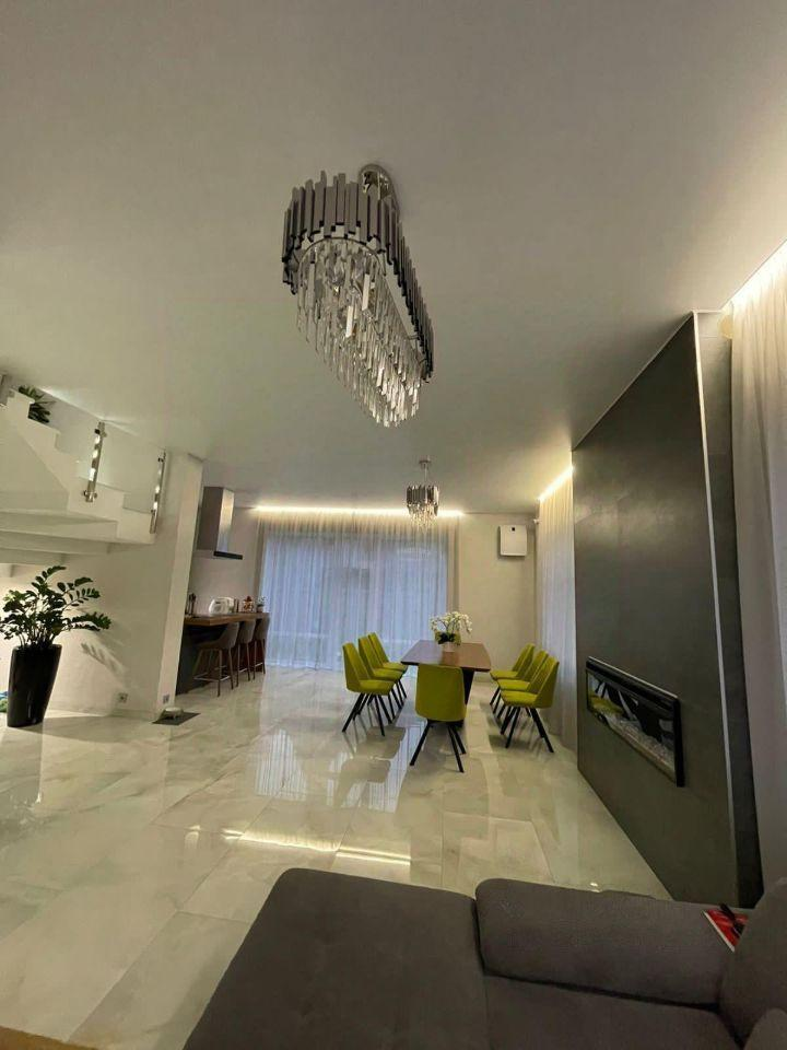 КП Синергия. Дом в 2 этажа 200м2 +5 соток: выполнена современная стильная отделка с использованием премиальных материалов из Италии и Испании. На стенах - декоративная штукатурка, в спальнях - обои, при входе в дом декоративная стена из стабилизированного мха.