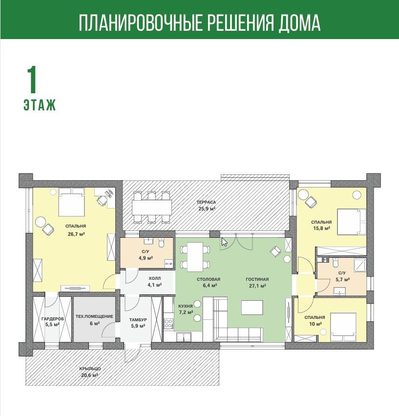 Предлагаемый вариант отделки – white-box, т.е. дом, полностью готовый к чистовой отделке (все внутренние перегородки установлены, разводка сетей произведена), остаётся только «поклеить обои».