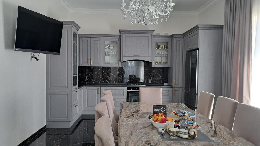 Дом строился для себя , отделка сделана из высококачественных материалов, мебель изготовлена по индивидуальному заказу В каждой комнате располагается встроенный шкаф для одежды, в прихожей просторная гардеробная с зеркалом. На первом этаже и в ванной комнате -теплый пол, есть гардеробная.