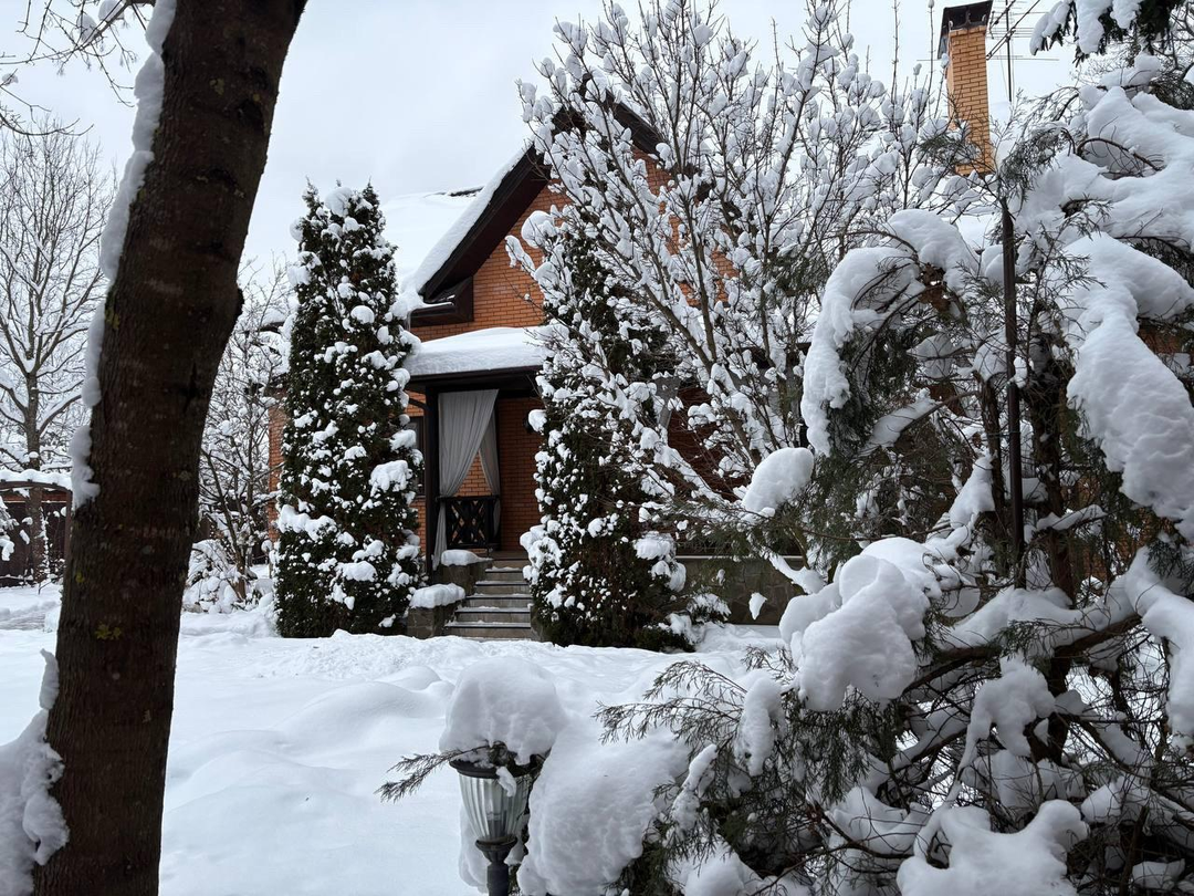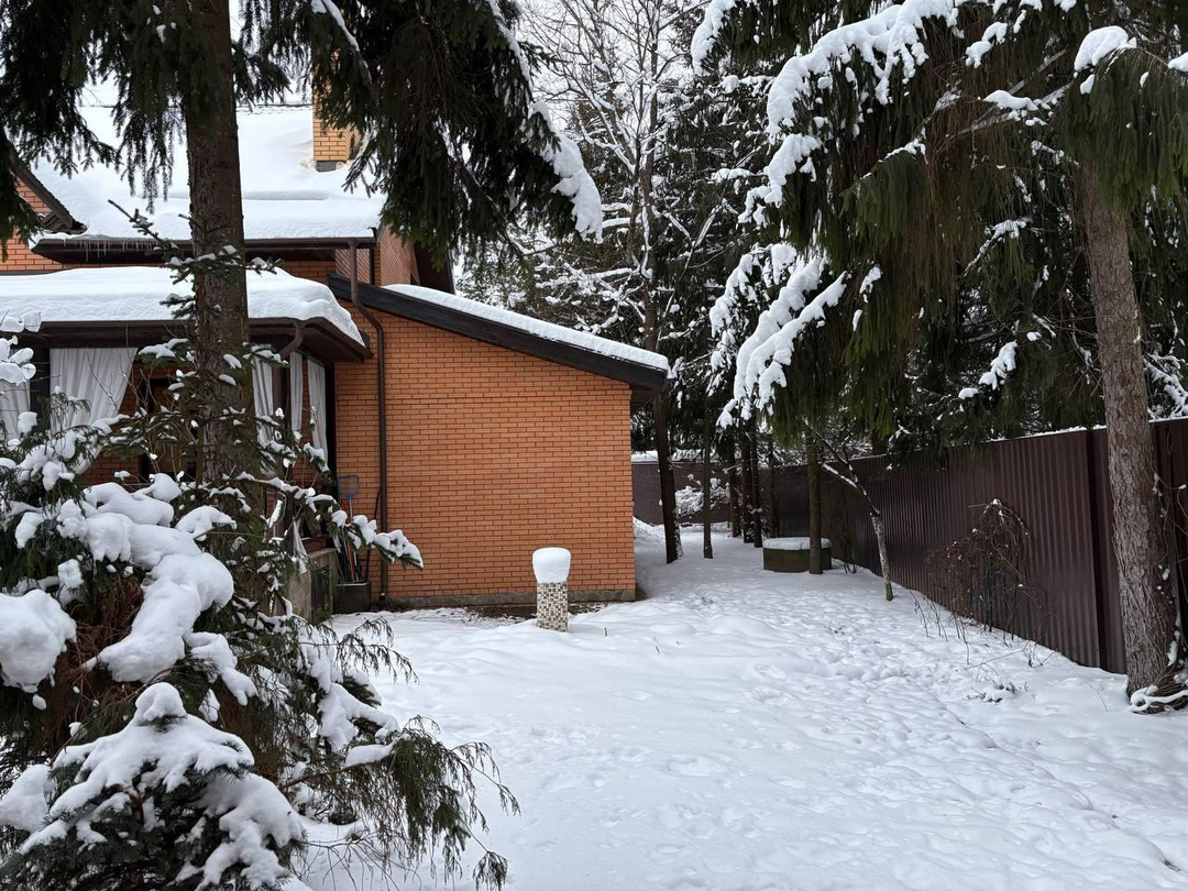 Дом для постоянного проживания, расположенный в 35 км от МКАД на участке 12,5 соток правильной формы, где выполнен авторский ландшафтный дизайн:посажены