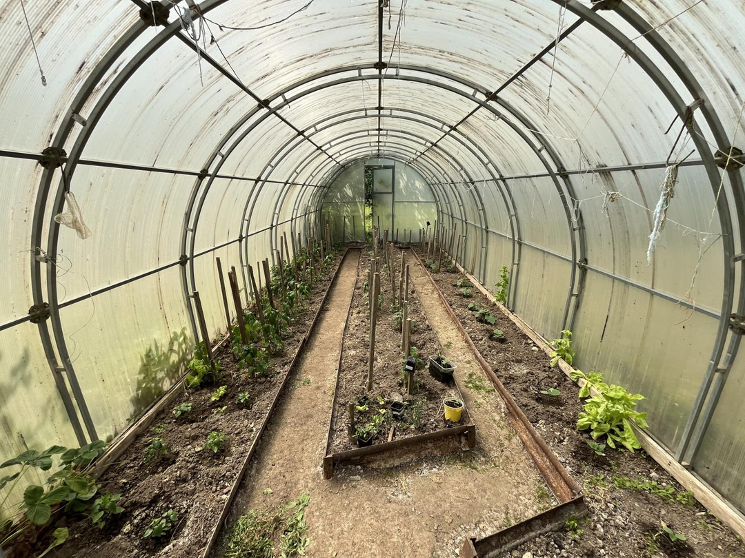Две большие теплицы.