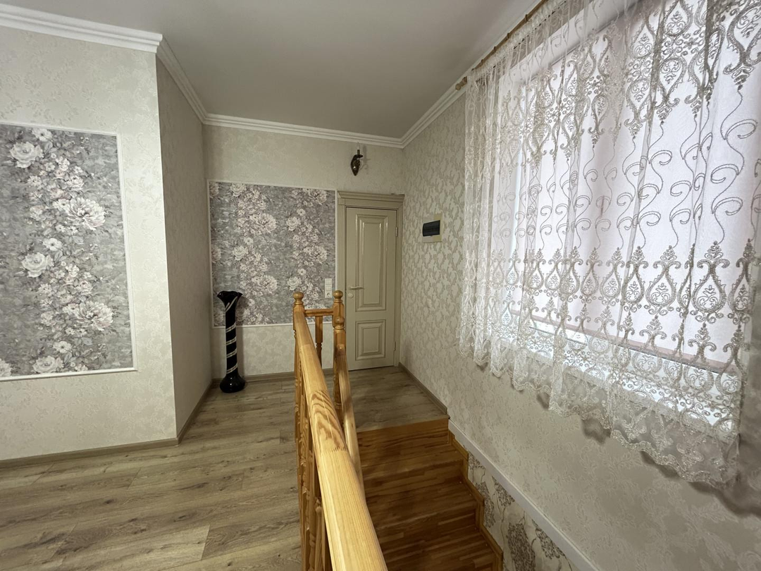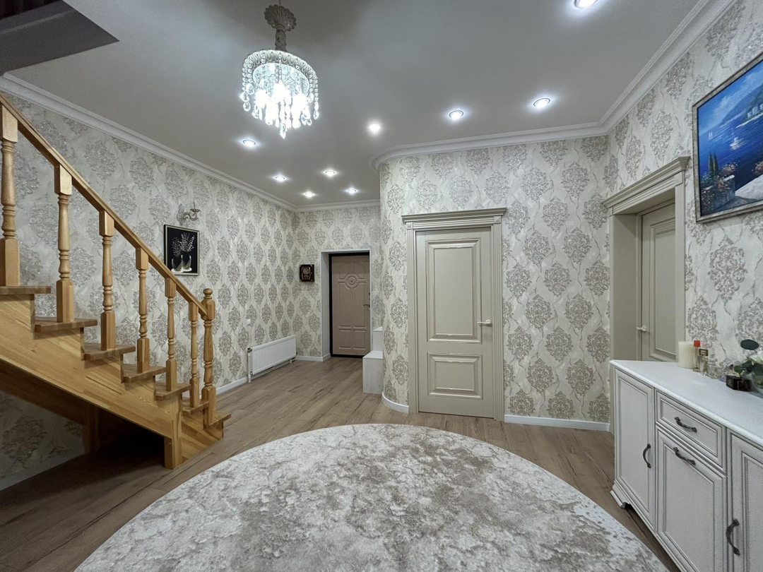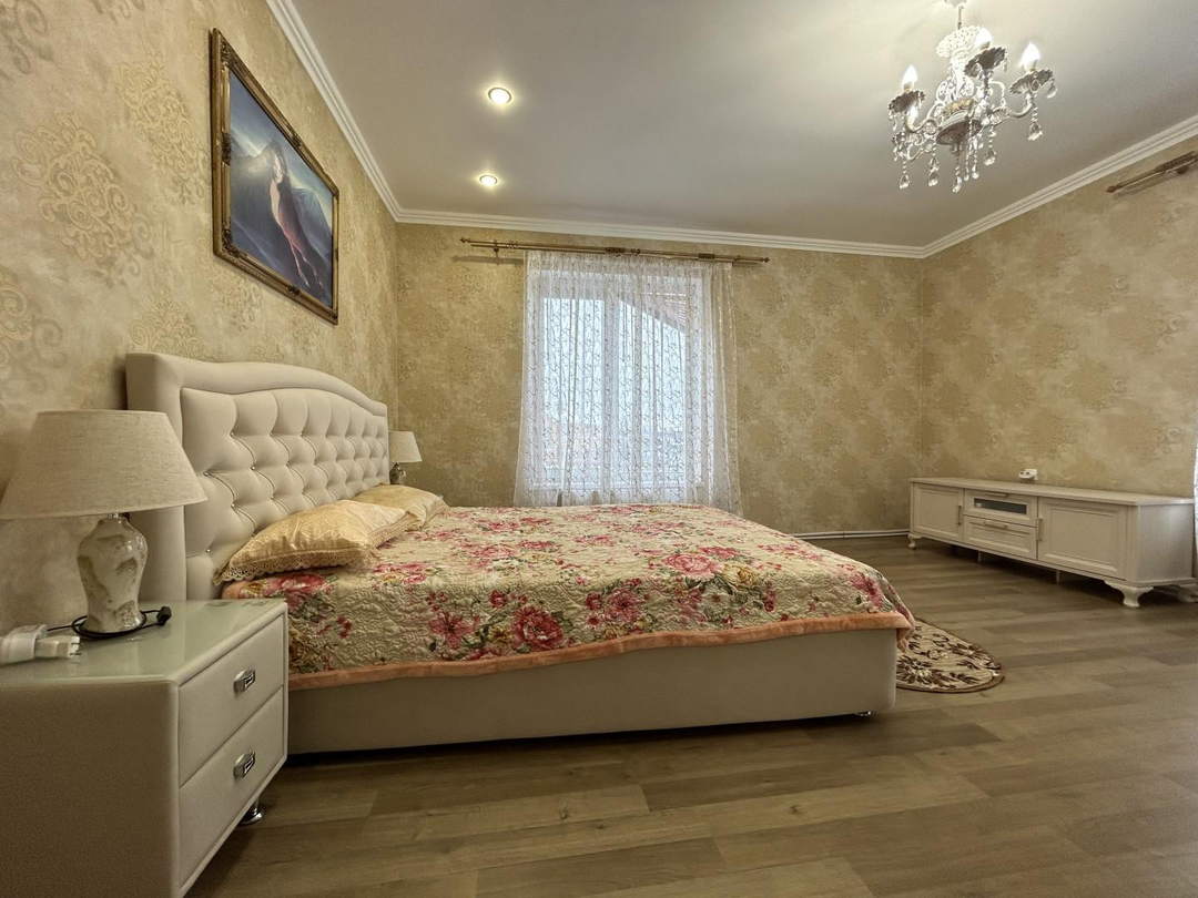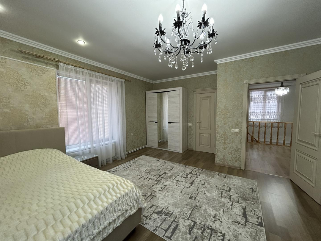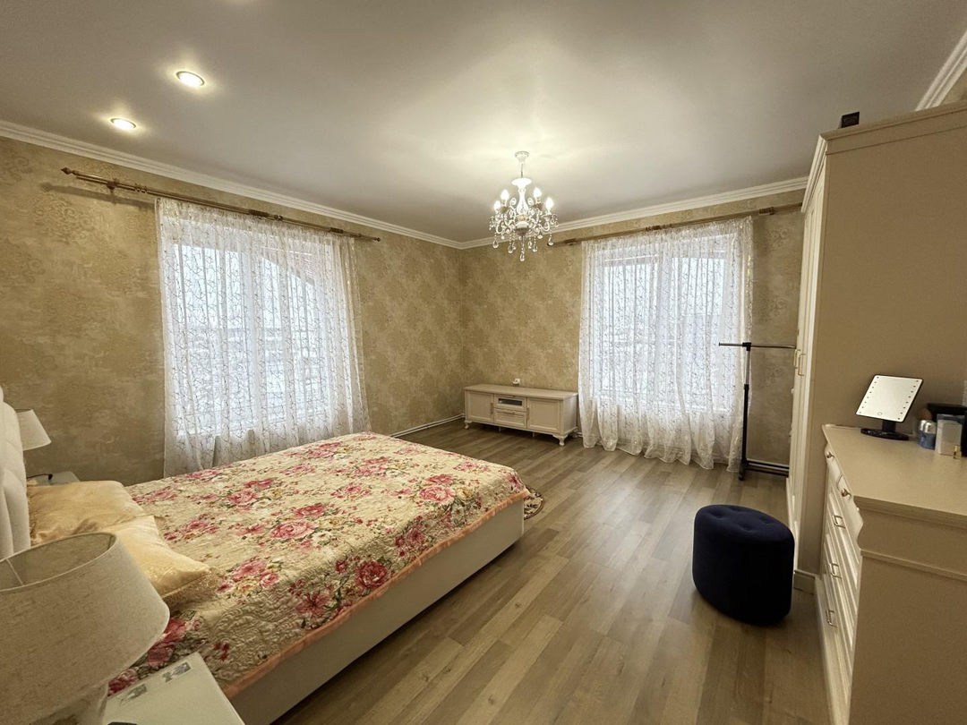 Дом двухэтажный общей площадью 250 кв. метров: на первом этаже находится большой холл, гардеробная комната, кухня-гостиная, два санузла, гостевая комната, техническое помещение с выходом на улицу; на втором этаже находятся три просторные спальни ( одна из них мастер спальня со своим санузлом, вторая спальня с большой лоджией), холл и санузел.