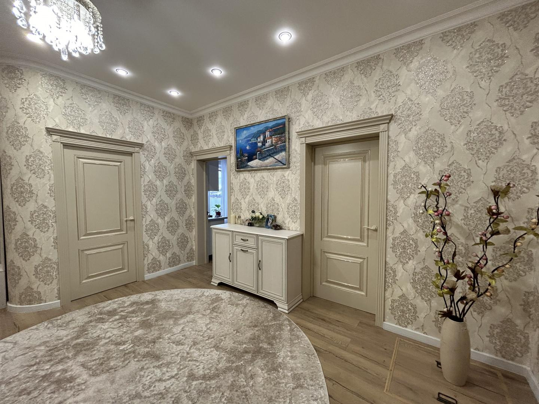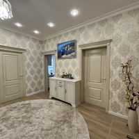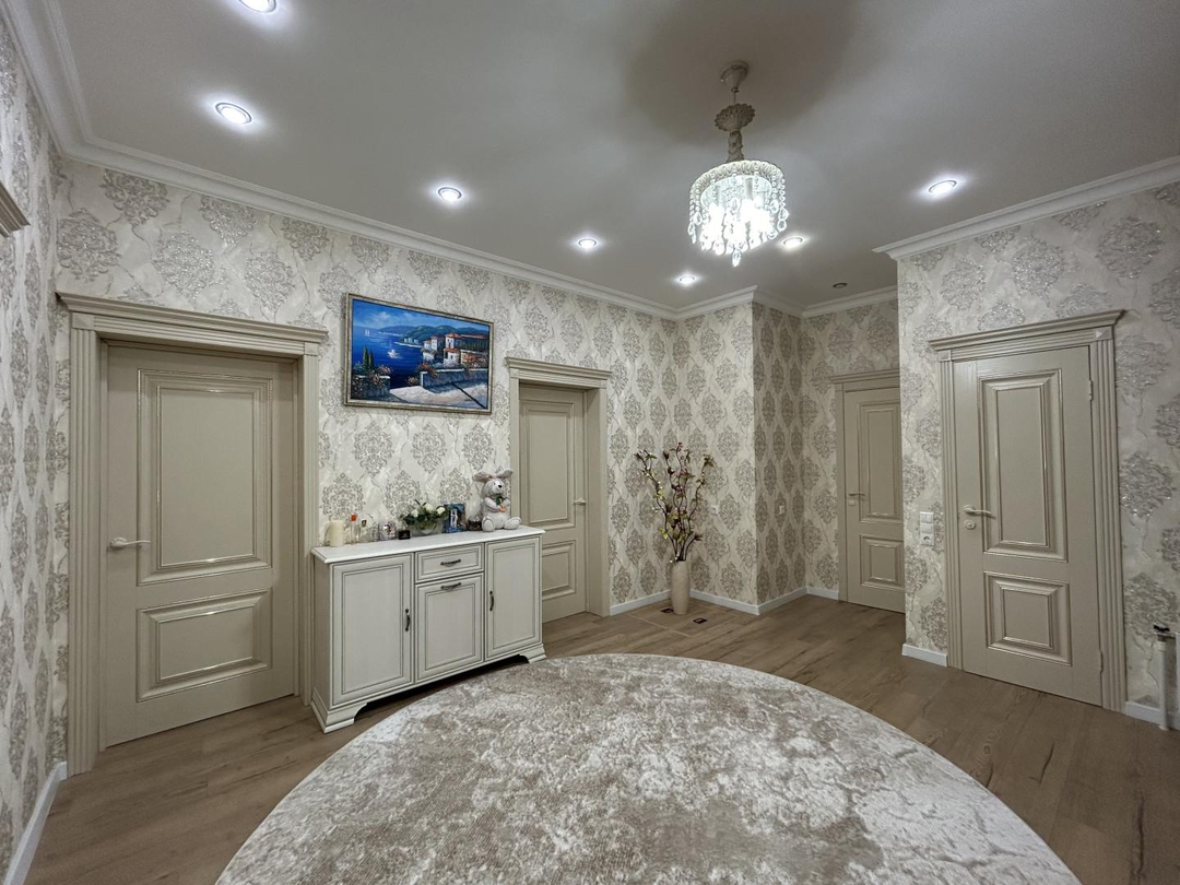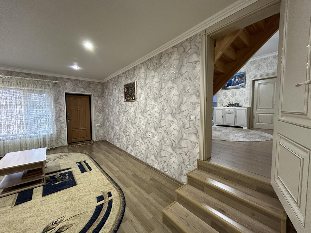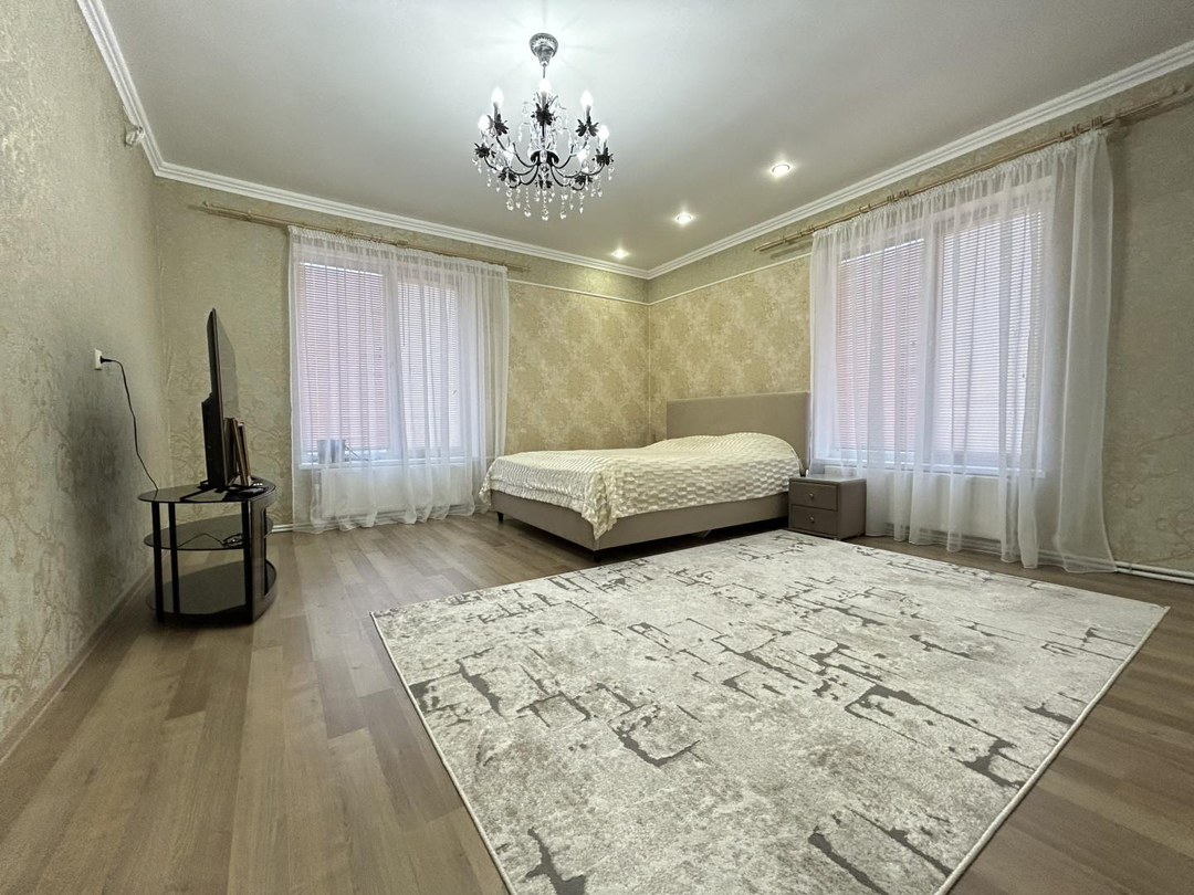 Дом двухэтажный общей площадью 250 кв. метров: на первом этаже находится большой холл, гардеробная комната, кухня-гостиная, два санузла, гостевая комната, техническое помещение с выходом на улицу; на втором этаже находятся три просторные спальни ( одна из них мастер спальня со своим санузлом, вторая спальня с большой лоджией), холл и санузел.