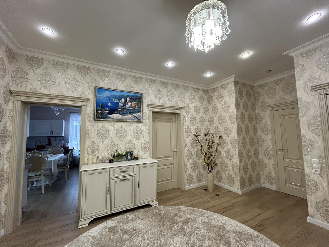 Ремонт в доме выполнен из дорогих и качественных материалов: немецкий ламинат, европейская плитка и обои, хорошая сантехника и мебель. Электричество подведено 18 кВт 3 фазы, скважина на 15 метров, газ в доме, септик три степени очистки - все оборудование новое.