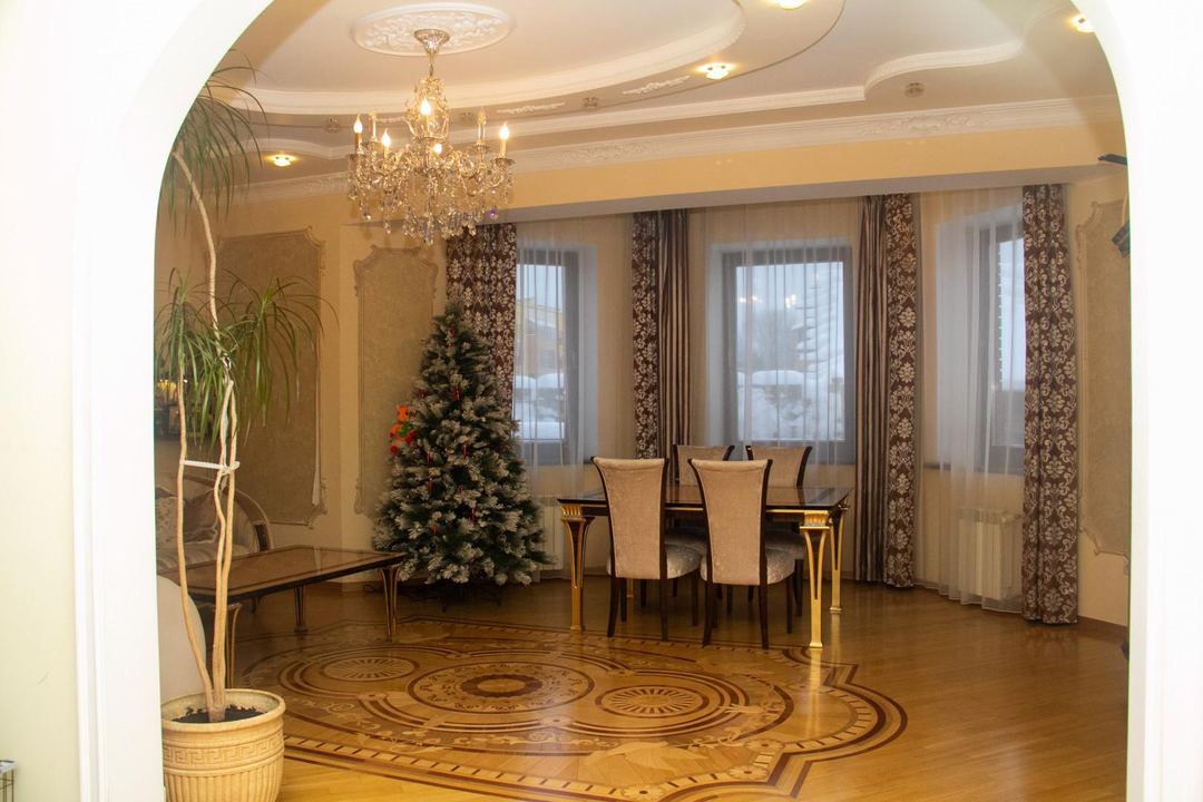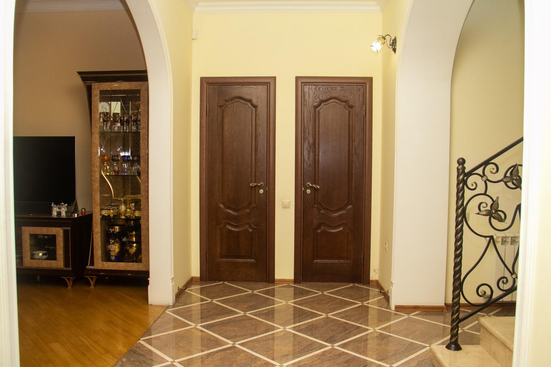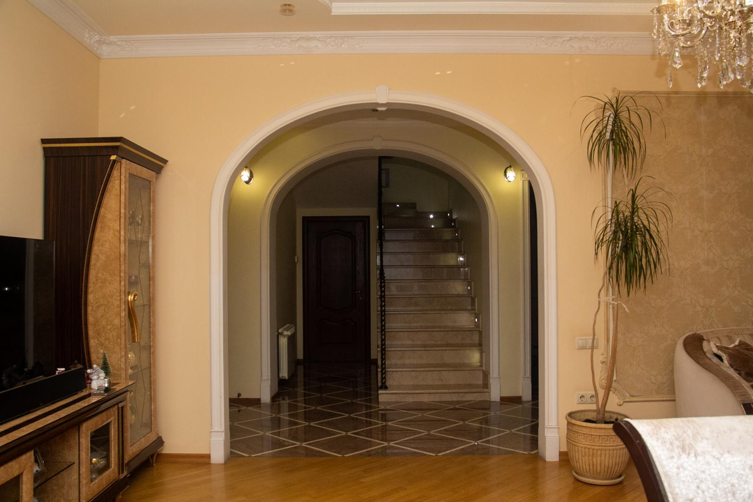 Внутренняя отделка лепнина, керамогранит, паркет, мраморная лестница, освещение по всему дому