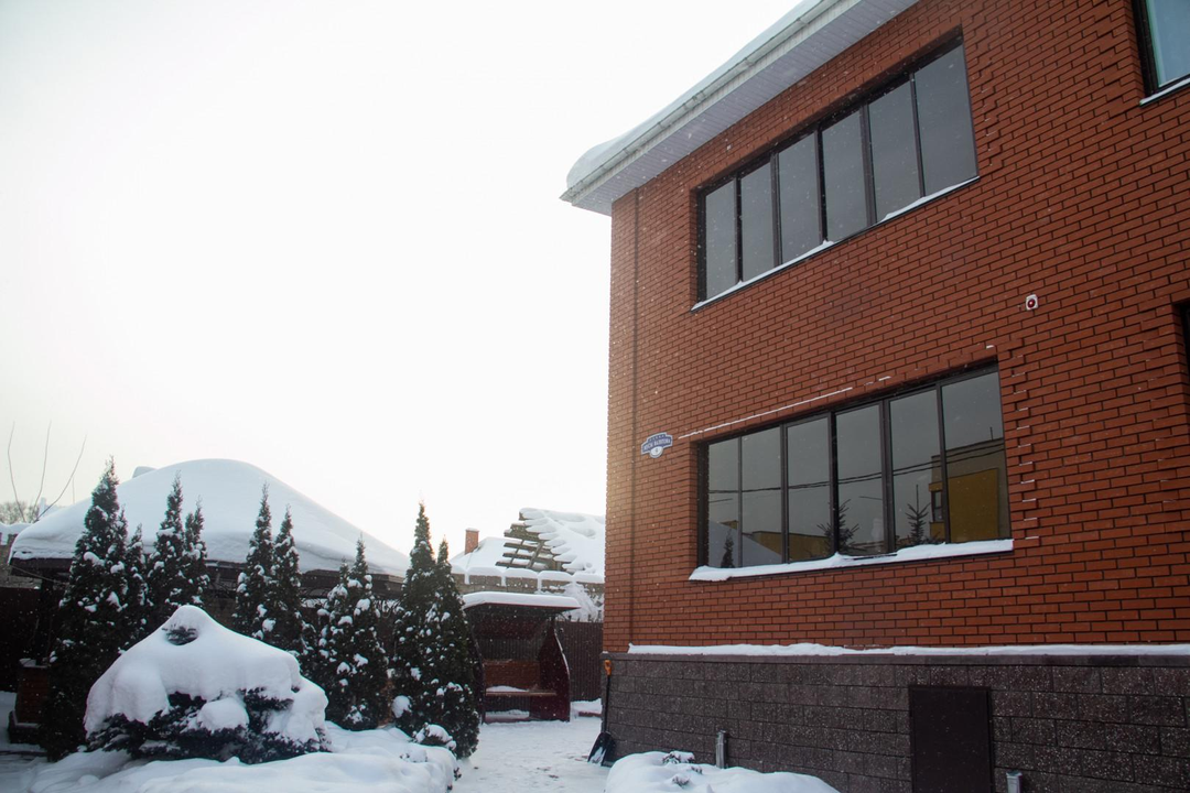 Дом из красного кирпича 289 м² снаружи и внутри, плиты перекрытия.