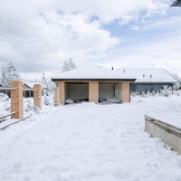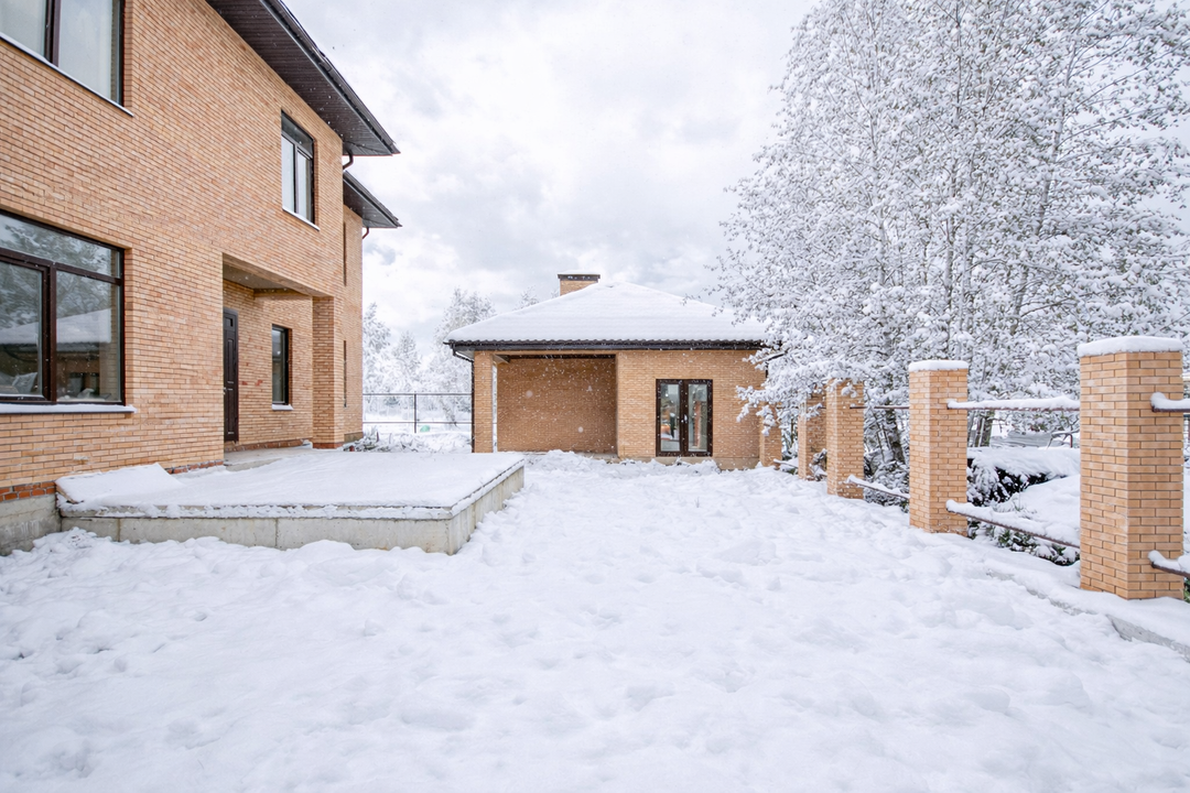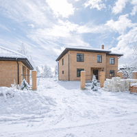 Параметры дома:Общая площадь: 288.4 м²Этажность: 2 этажаКоличество комнат: 6 (размером от 16.5 до 54.9 м²)Материал стен: пеноблокОблицовка: кирпичФундамент: лента + плитаКрыша: металлочерепица2 сан/узла2 гардеробныеТеплый тамбур Открытая веранда 16.1 м²