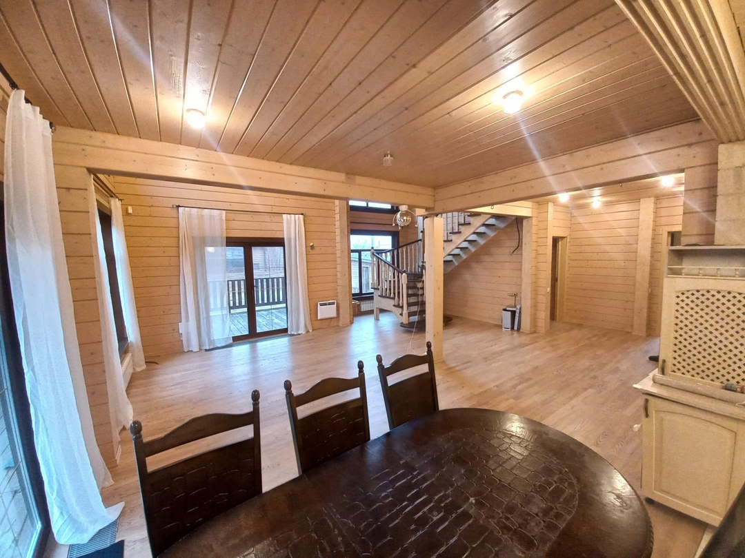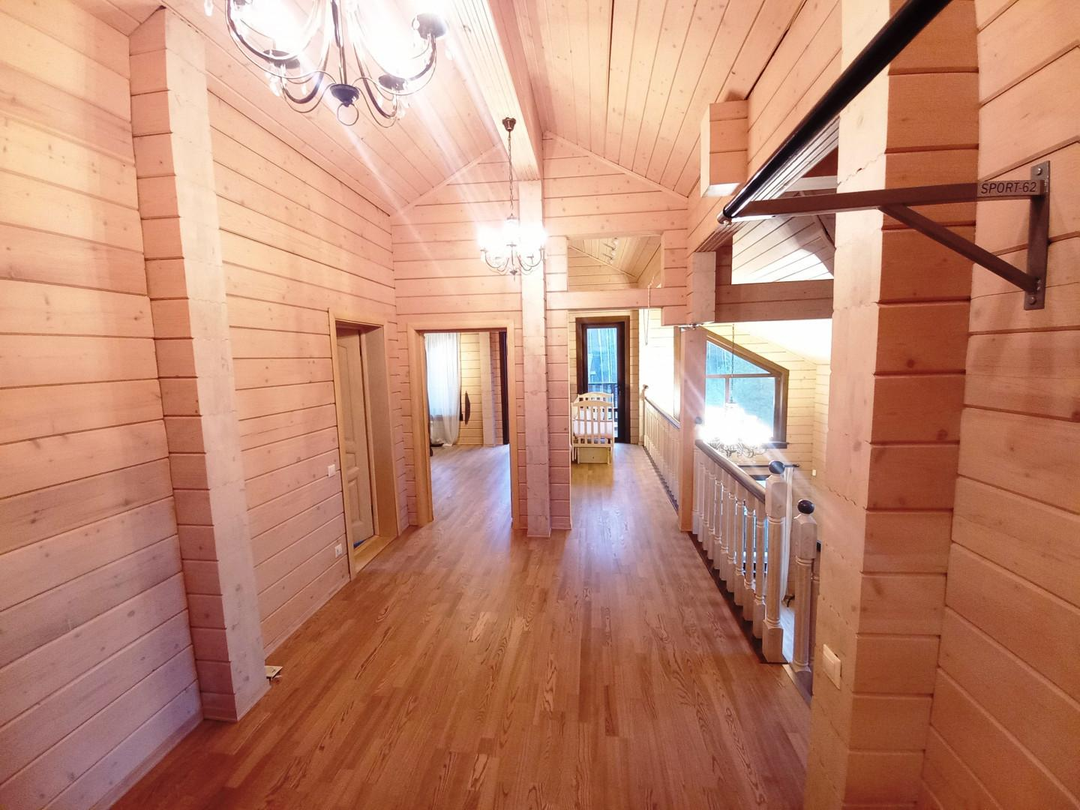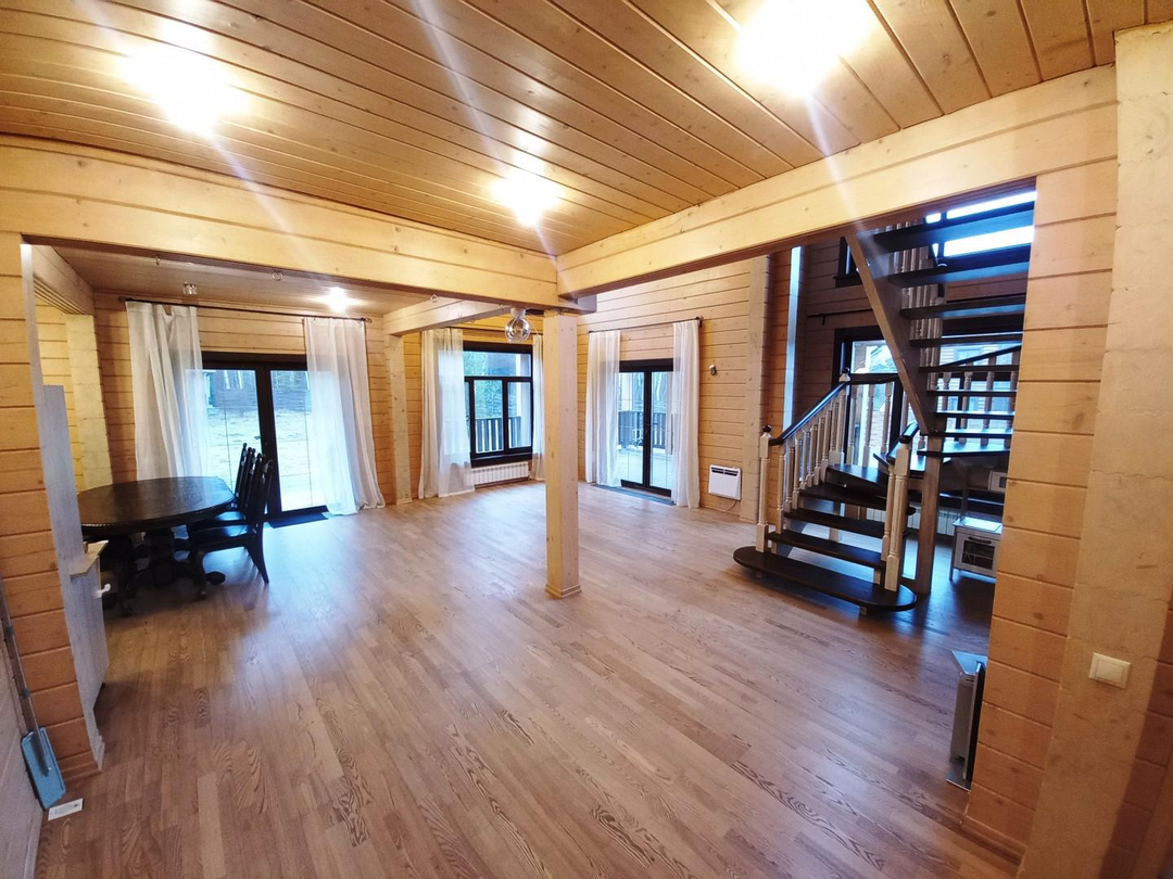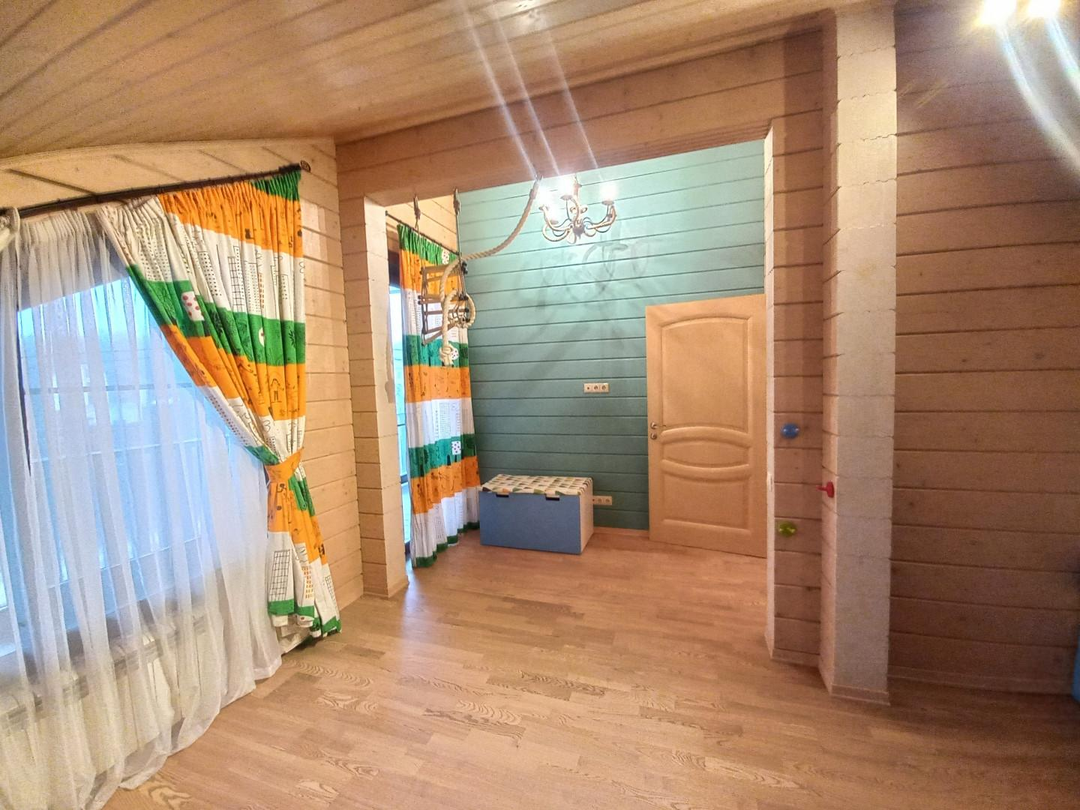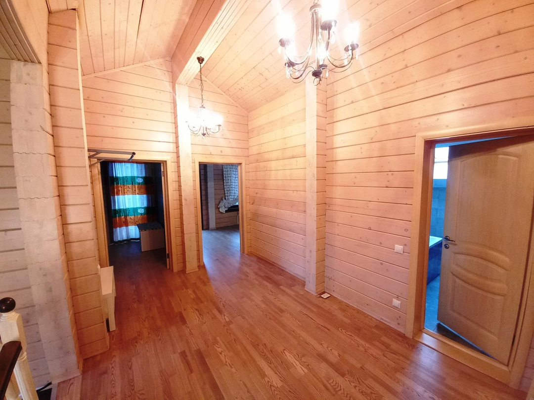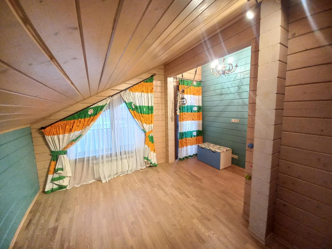 Светлый, уютный дом для комфортной и круглогодичной жизни большой семьёй. На первом этаже спальня, кабинет, просторная и светлая кухня-гостиная, с/у с душевой кабиной, просторная веранда. На втором этаже три уютные комнаты с выходом на большие балконы, с/у с ванной. Участок ровный, без уклонов, со своим выходов в лес куда можно ходить за грибами прямо со своего участка. Все коммуникациями: газ, электричество 15 кВт, централизованная артезианская питьевая вода из своей скважины ДПК. Канализация, собственный септик. На участке построена баня 42 кв. м., гараж на две машины 45,5 кв.м, оформленные в собственность.
