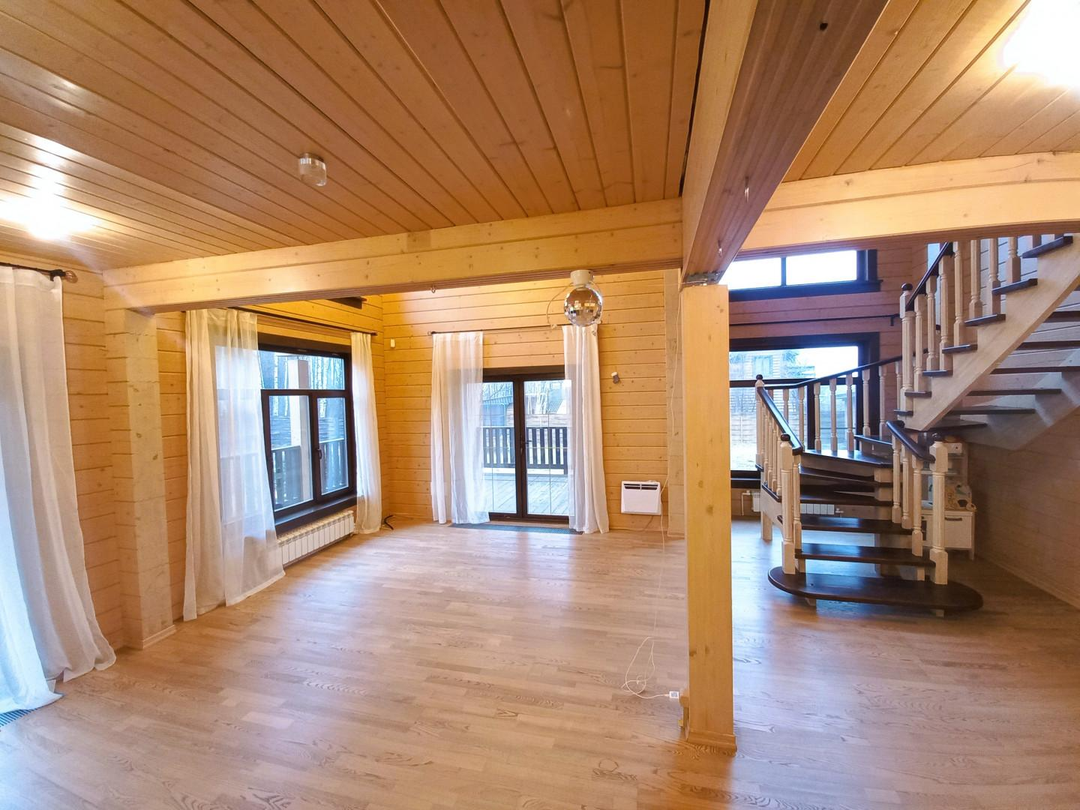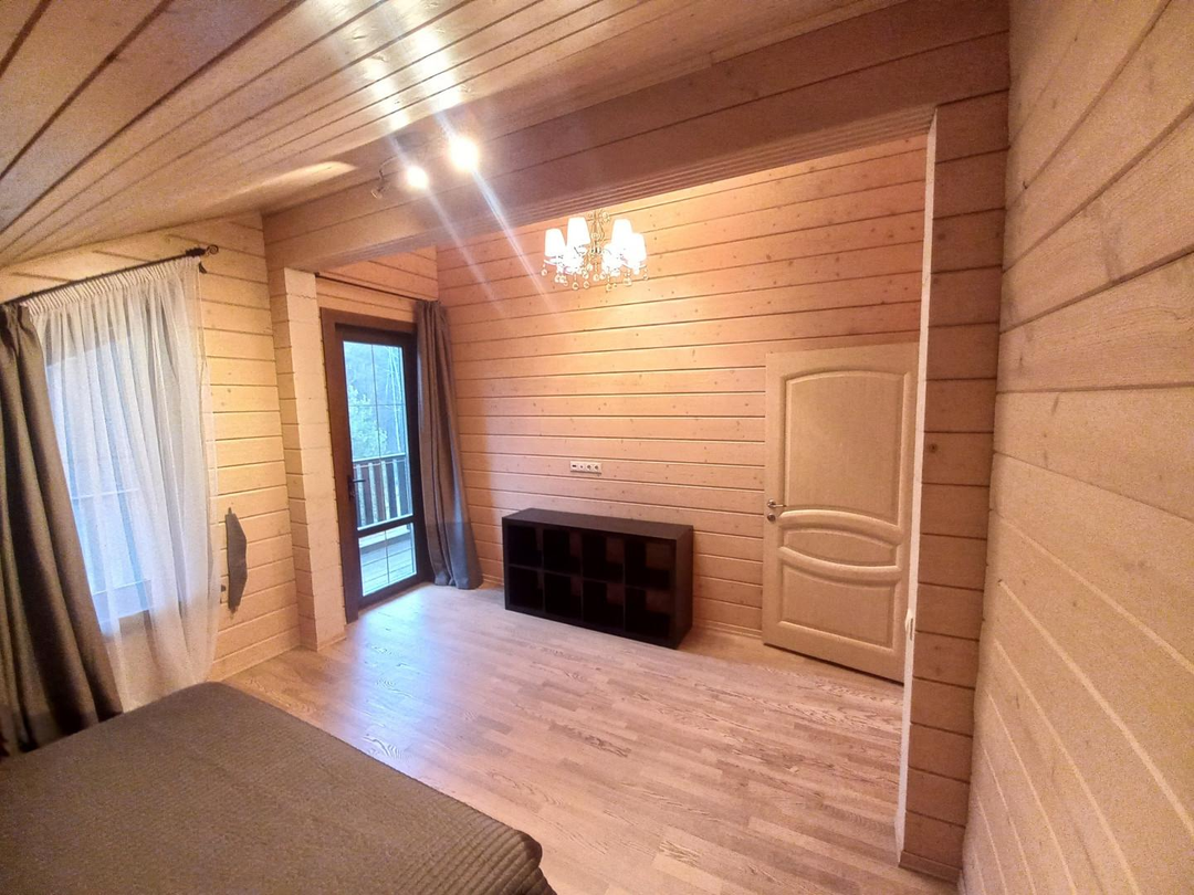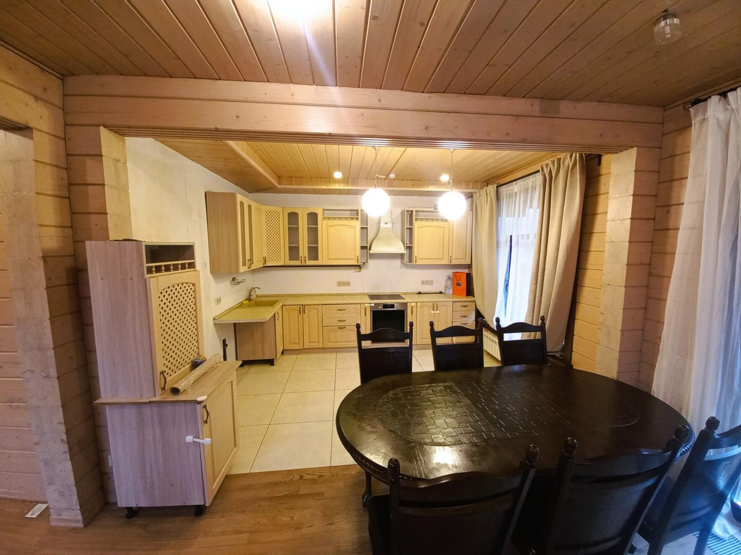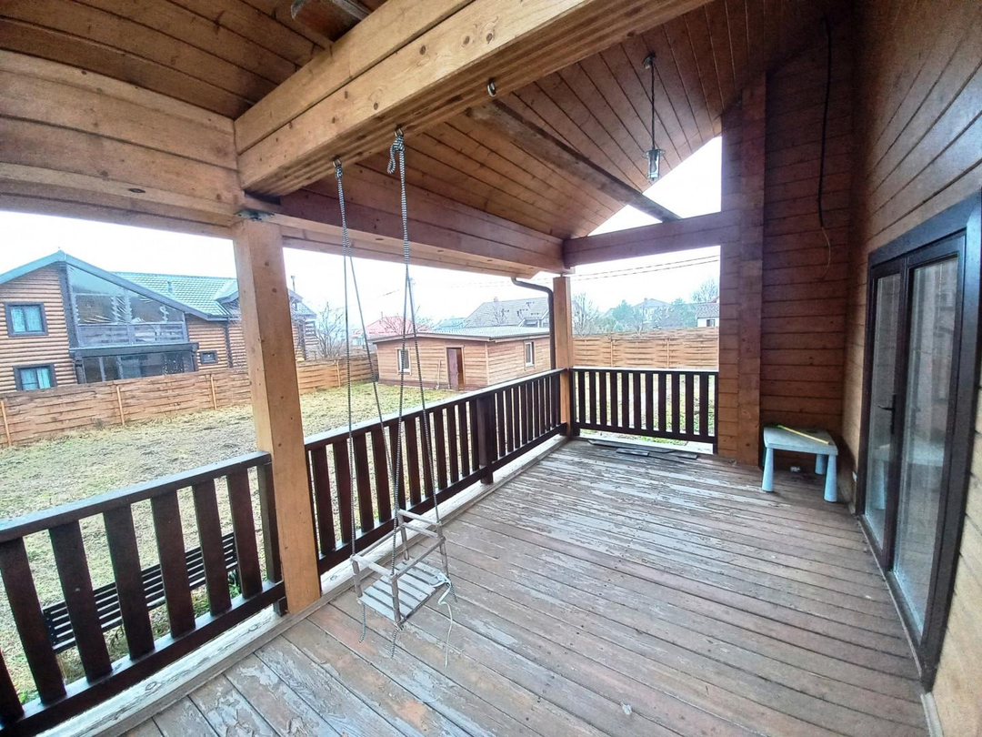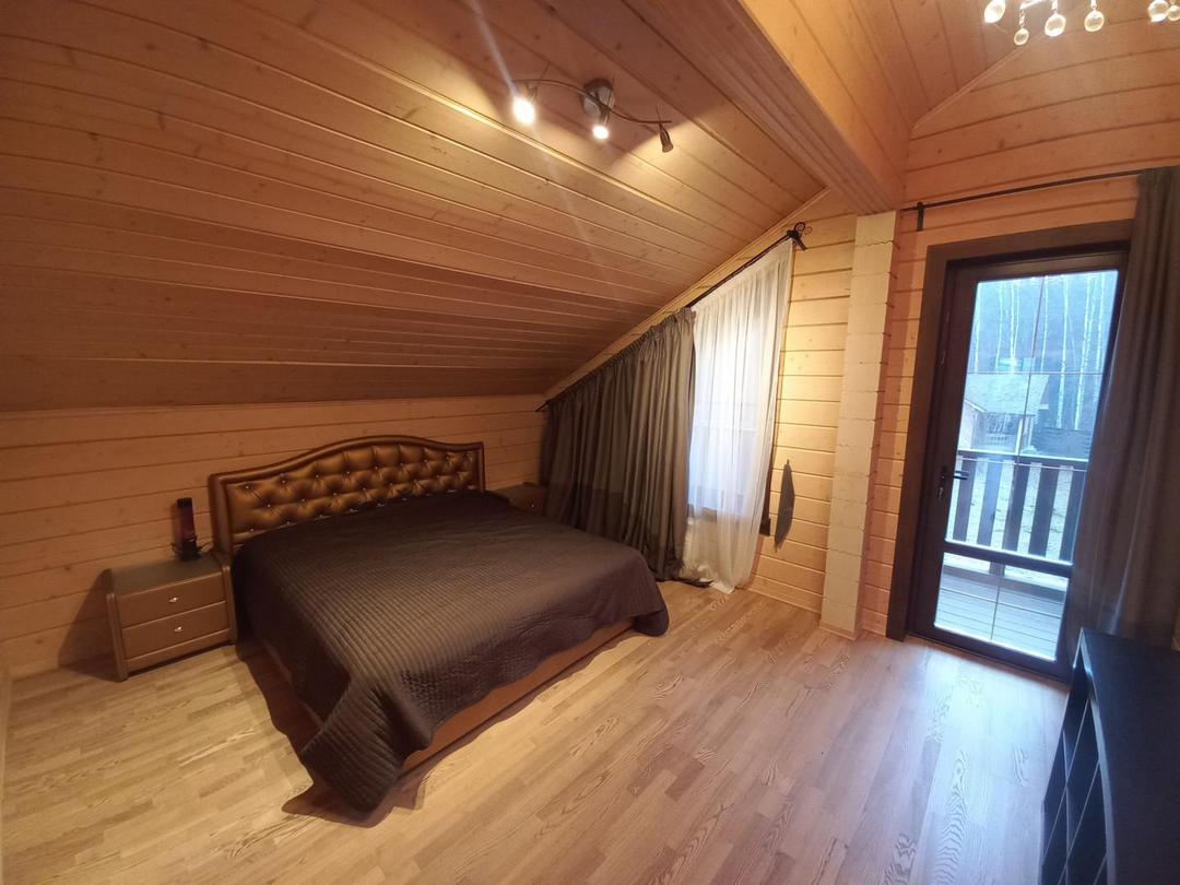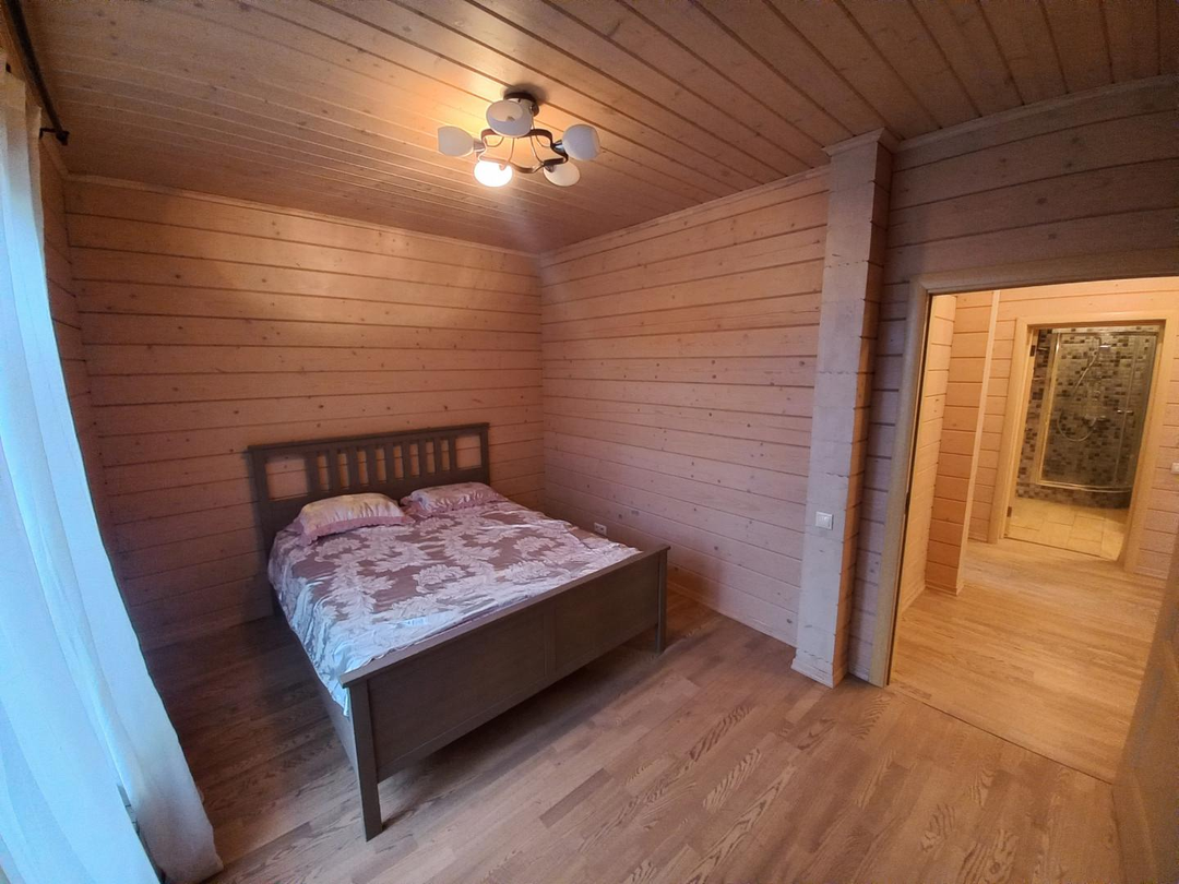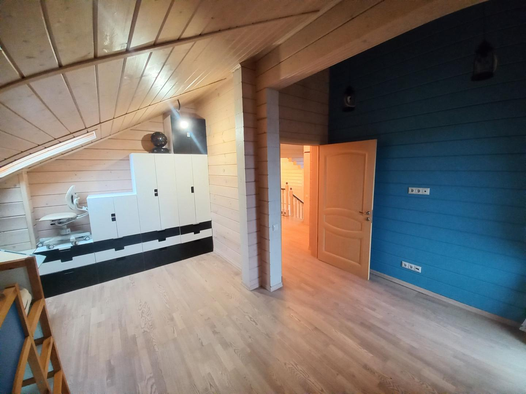 Светлый, уютный дом для комфортной и круглогодичной жизни большой семьёй. На первом этаже спальня, кабинет, просторная и светлая кухня-гостиная, с/у с душевой кабиной, просторная веранда. На втором этаже три уютные комнаты с выходом на большие балконы, с/у с ванной. Участок ровный, без уклонов, со своим выходов в лес куда можно ходить за грибами прямо со своего участка. Все коммуникациями: газ, электричество 15 кВт, централизованная артезианская питьевая вода из своей скважины ДПК. Канализация, собственный септик. На участке построена баня 42 кв. м., гараж на две машины 45,5 кв.м, оформленные в собственность.