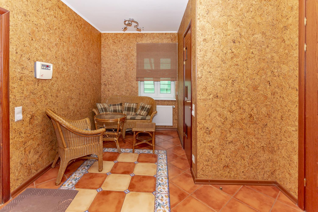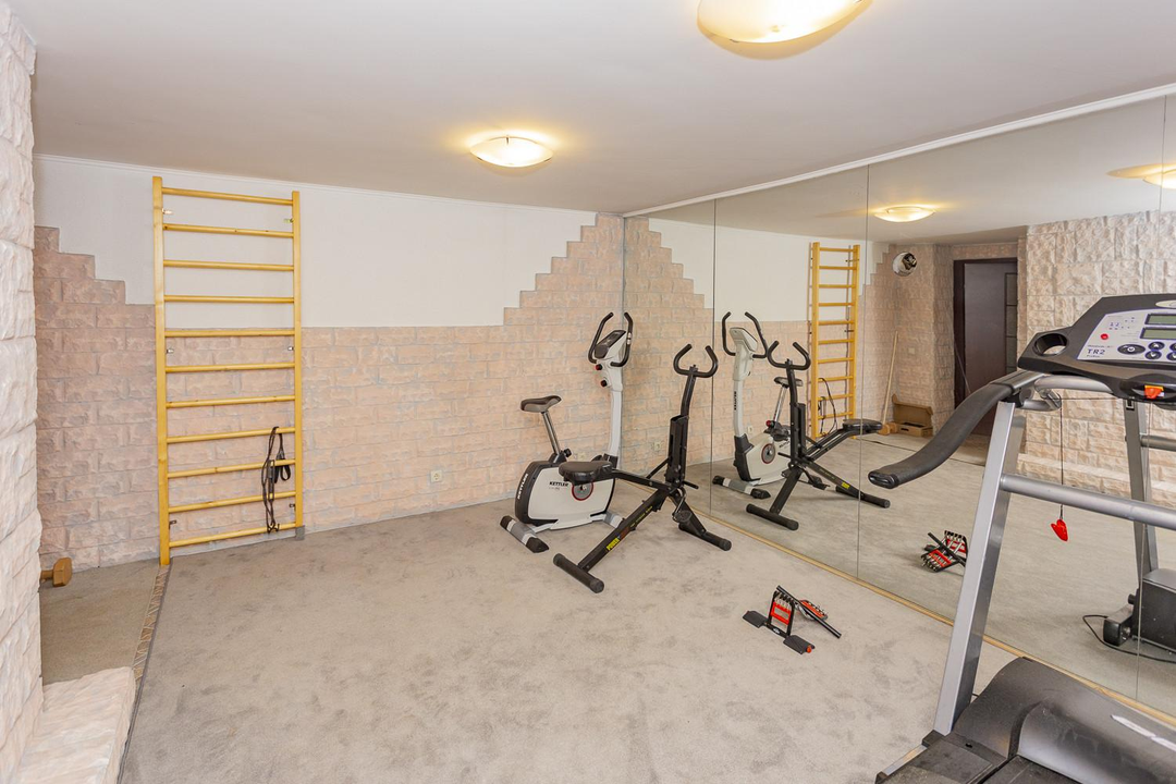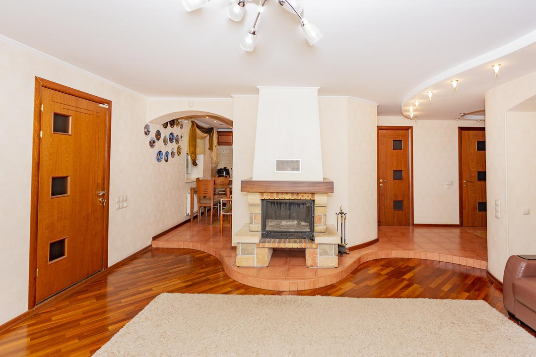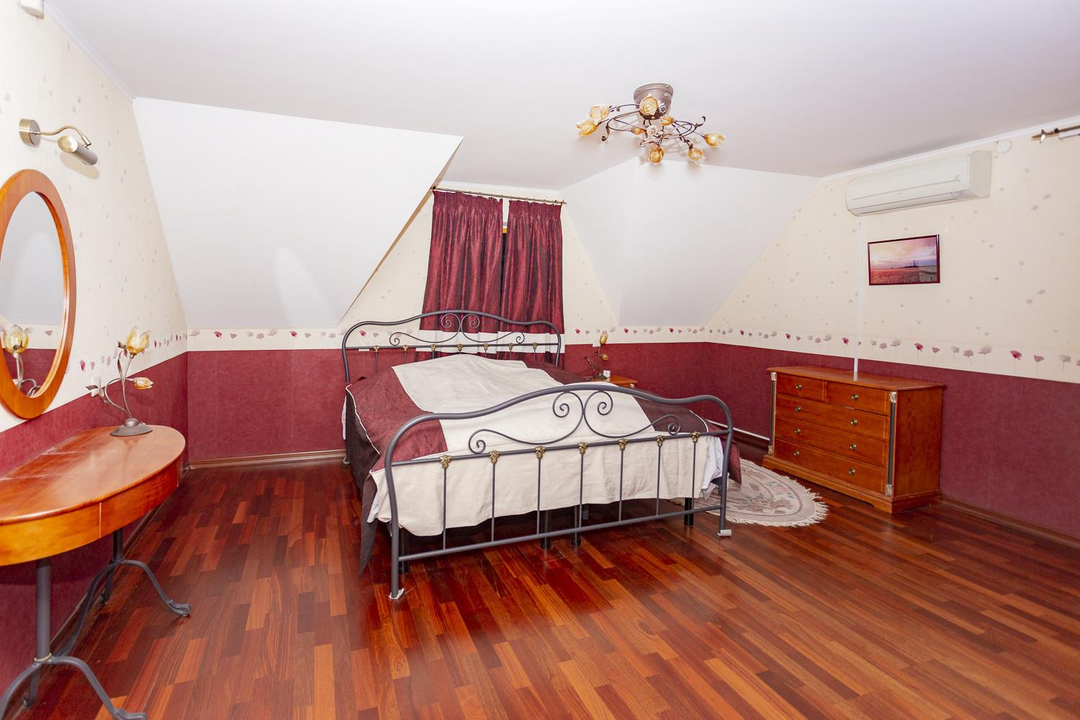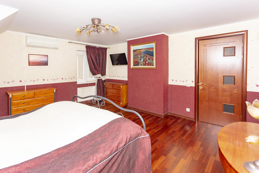 Дом построен в 2007 году с использованием дорогих и высококачественных материалов и на сегодня, не требующий дополнительных финансовых вложений. Дом состоит из 4-х уровней, которые включают в себя: большую гостиную зону с камином и кухней и выходом на большую остекленную летнюю террасу, сауну с душевой, спортивный зал, 3 сан. узла, 4 спальни, бильярдную и в том числе большое количество встроенных и функциональных шкафов для хранения. Покрытие пола, качественная европейская плитка с подогревом и дорогая паркетная доска. Лестницы выполнены из массива дуба, установлены кондиционеры, качественные стеклопакеты на окнах, имеется система очистки воды. Так же в доме имеется теплый гараж с автоматическим открыванием и навесом, бойлерные и кладовка для хранения продуктовых запасов.