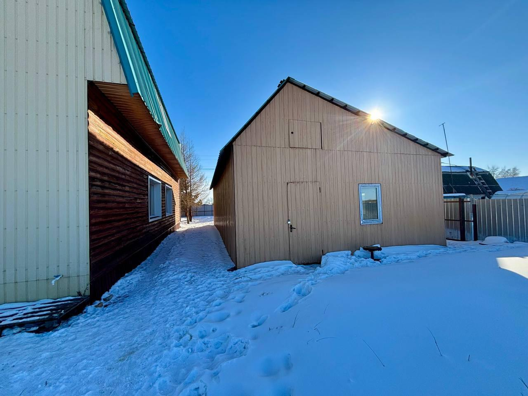 Рядом с домом есть гараж размером 7,5 на 11 метров, утепленный и с электропроводкой. Внутри гаража два слива под септик, вольер для животных и дровенник с местом для угля.