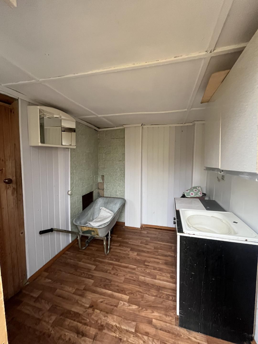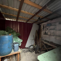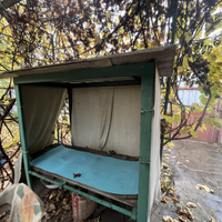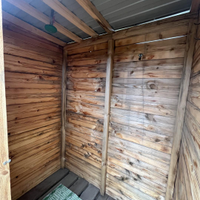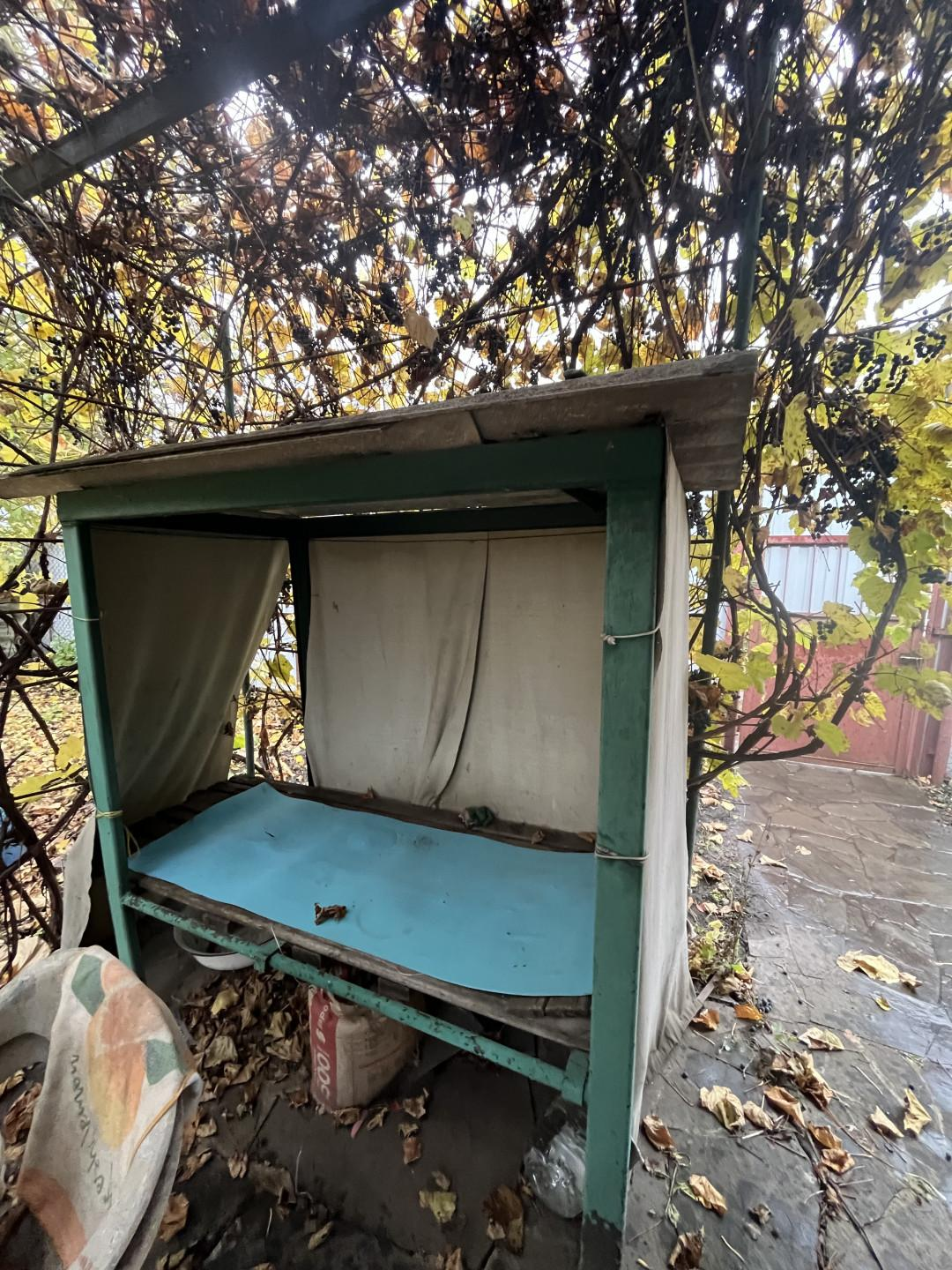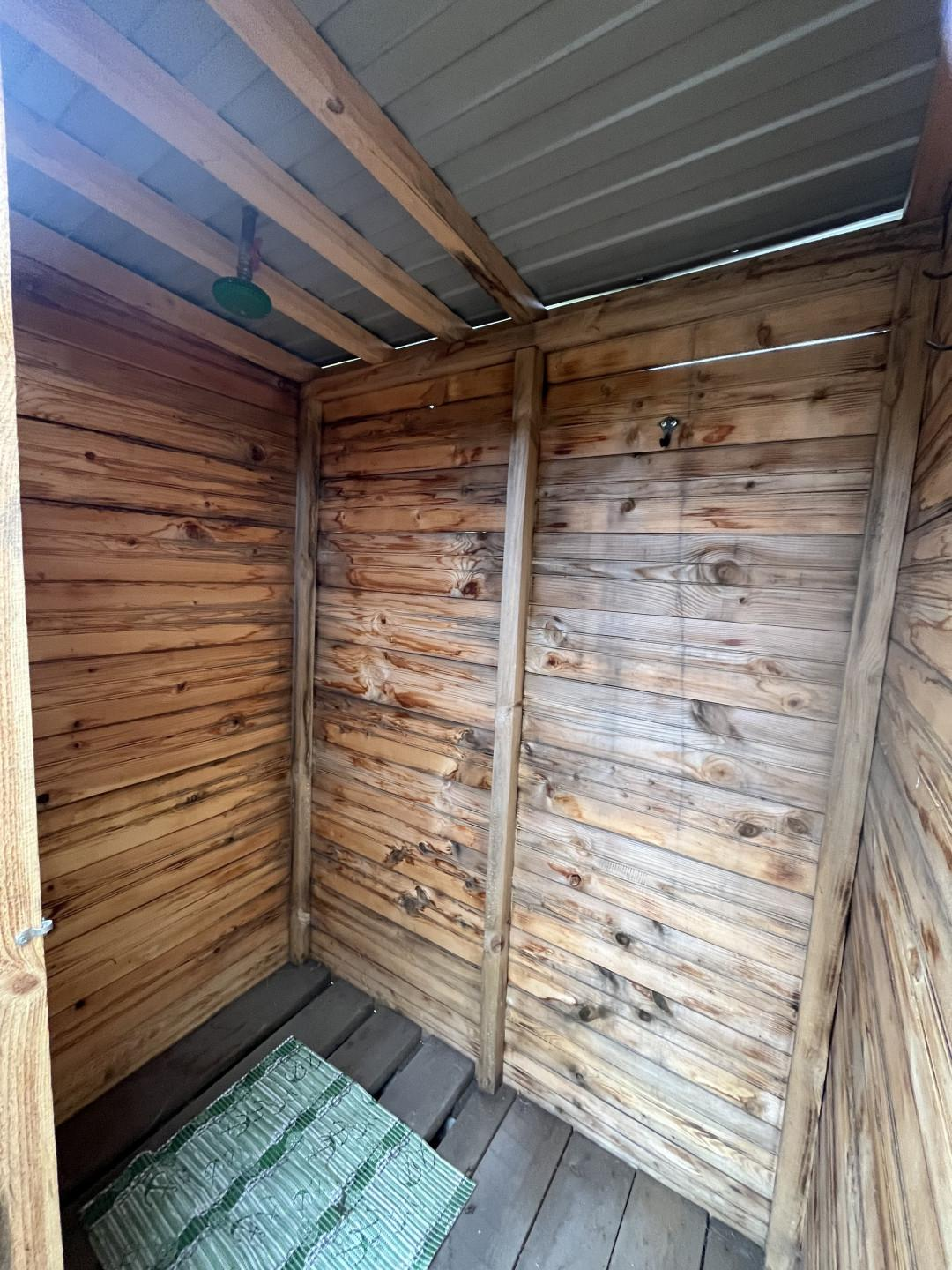 Закрытая беседка-кухня-столовая.Также обустроен летний душ и туалет.