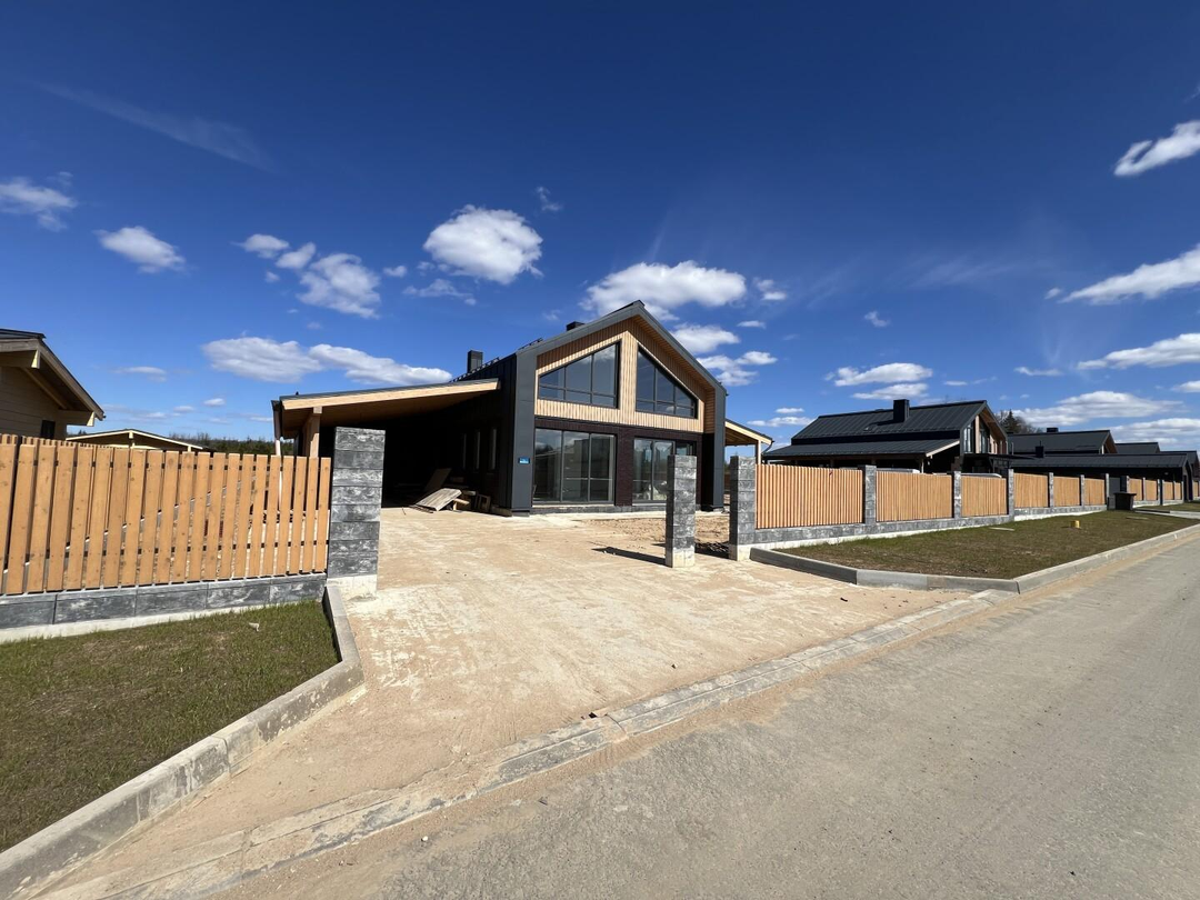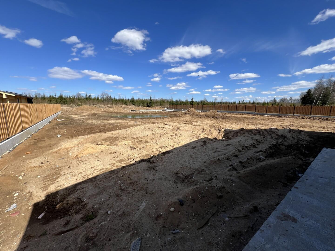 Огорожен забором в единой стилистике коттеджного посёлка. Выполнена парковка на 4. Участок выровнен, свой пруд на участке.