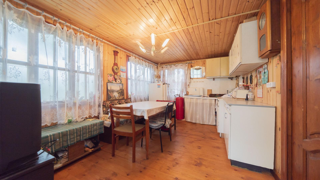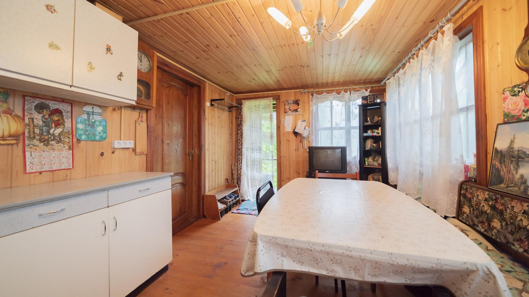 О доме:Общая площадь дома 41 кв.м;Площадь комнат: 10 кв.м. + 12 кв.м.;Материал дома: брус/каркас;Облицовка: вагонка;Материал фундамента: блоки/плита;Материал крыши: шифер;
