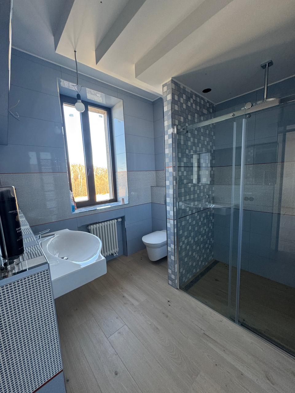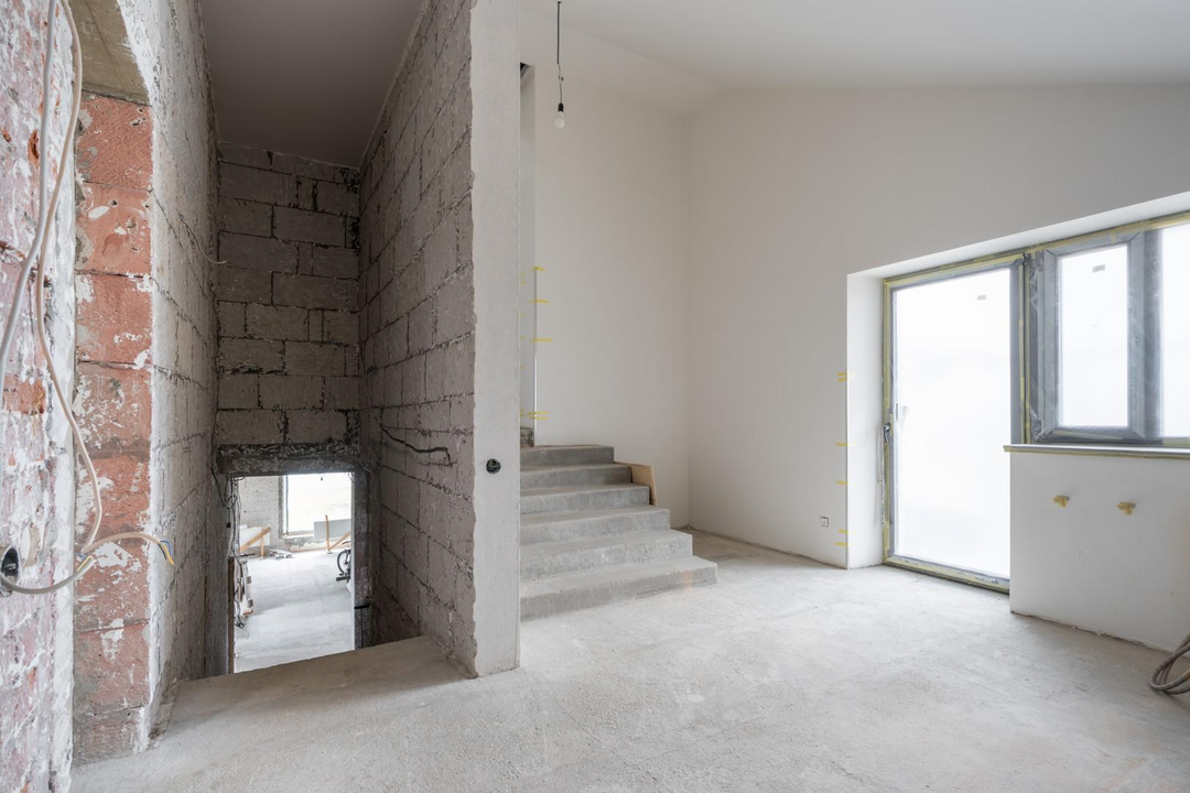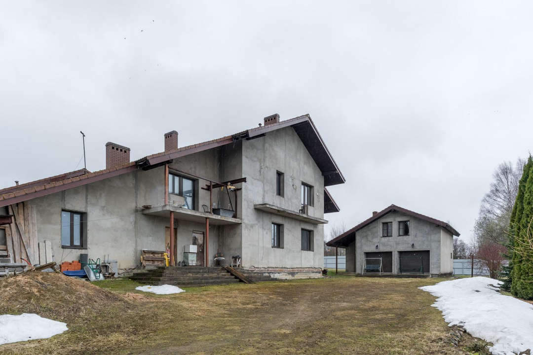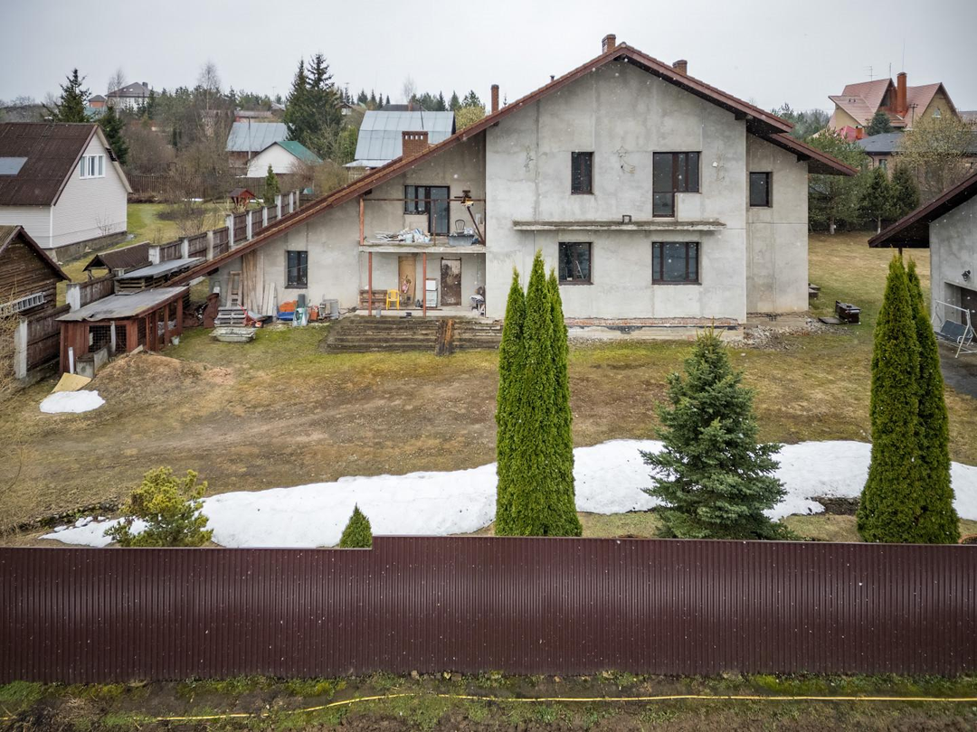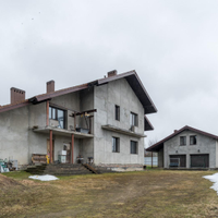 ДОМ 1: Основной дом для воплощения ваших идей (436,8 кв.м) Просторный двухэтажный дом с мансардой, выполненный из высококачественных материалов: пеноблок 400 мм с воздушной прослойкой и кирпичной кладкой. На всех этажах железобетонные перекрытия, крыша из натуральной черепицы.Готовность к финишной отделке: Стены оштукатурены, полы выровнены – идеальная основа для реализации любого дизайн-проекта. Внешний фасад также подготовлен под чистовую отделку.Комфорт и функциональность: Три санузла (два из них с чистовой отделкой), действующий камин для уютных вечеров.Современные коммуникации: Установлен газовый котел 72 кВт с раздельными контурами отопления и теплых полов. Заведено оптоволокно для высокоскоростного интернета.Продуманные детали: Оборудованы места под большую лоджию и балкон с живописным видом на поле, а также под просторную террасу.Изюминка: Отдельное, полностью подготовленное помещение под бассейн – ваш личный оазис релакса!