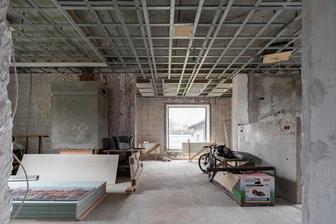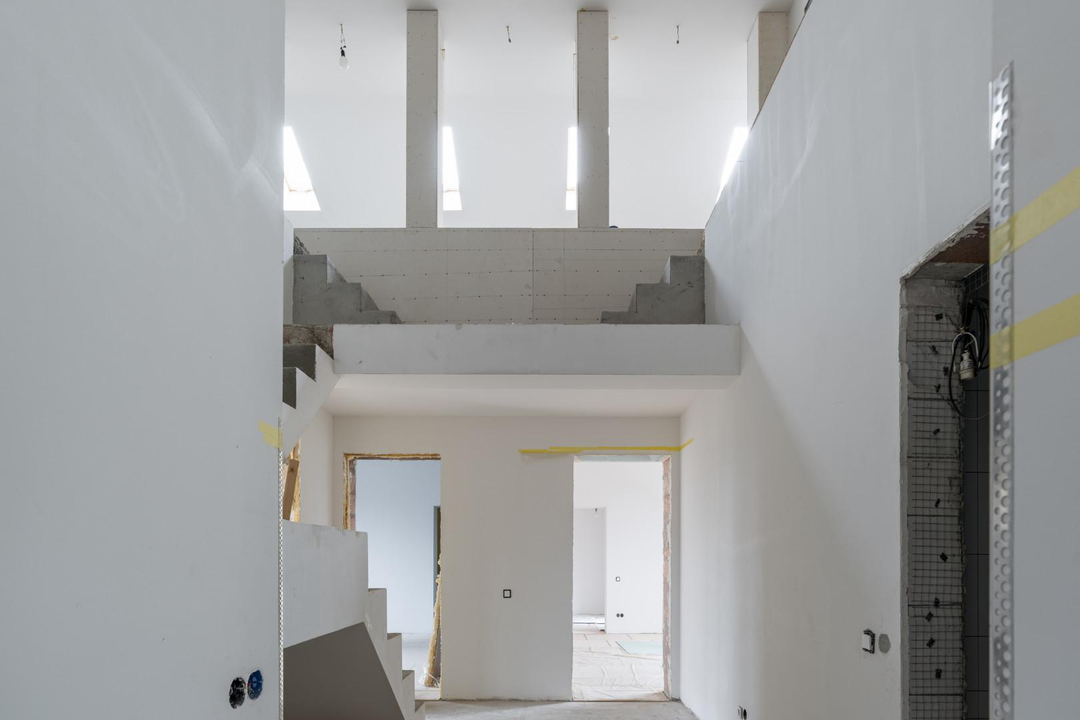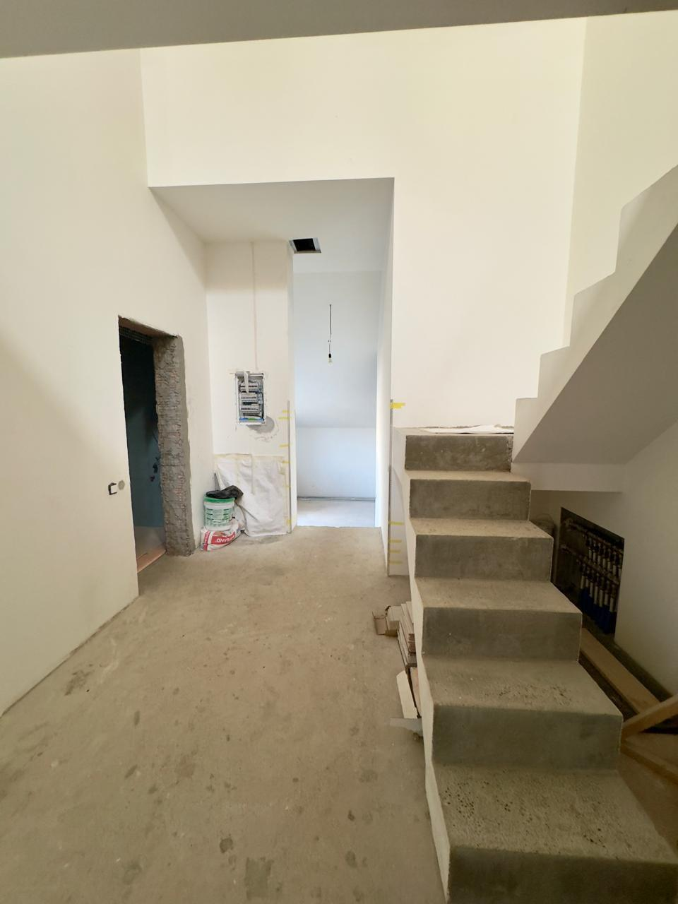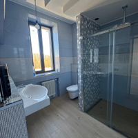 ДОМ 1: Основной дом для воплощения ваших идей (436,8 кв.м) Просторный двухэтажный дом с мансардой, выполненный из высококачественных материалов: пеноблок 400 мм с воздушной прослойкой и кирпичной кладкой. На всех этажах железобетонные перекрытия, крыша из натуральной черепицы.Готовность к финишной отделке: Стены оштукатурены, полы выровнены – идеальная основа для реализации любого дизайн-проекта. Внешний фасад также подготовлен под чистовую отделку.Комфорт и функциональность: Три санузла (два из них с чистовой отделкой), действующий камин для уютных вечеров.Современные коммуникации: Установлен газовый котел 72 кВт с раздельными контурами отопления и теплых полов. Заведено оптоволокно для высокоскоростного интернета.Продуманные детали: Оборудованы места под большую лоджию и балкон с живописным видом на поле, а также под просторную террасу.Изюминка: Отдельное, полностью подготовленное помещение под бассейн – ваш личный оазис релакса!