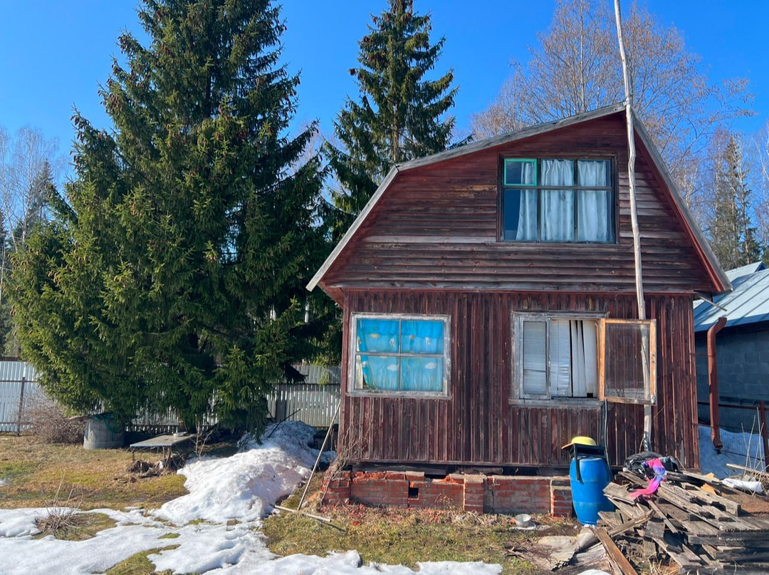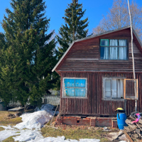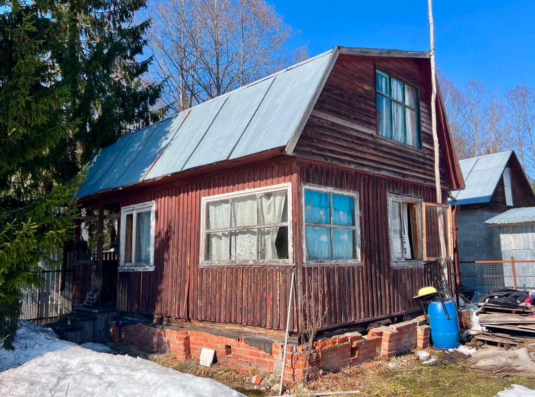Дом 45 кв.м. Дом щитовой, фундамент - на блоках. Промежутки между блоками закрыты кирпичной кладкой. Крыша из оцинкованного профлиста. Окна деревянные. В доме обустроен санузел. Дом электрофицирован. Удобная планировка: на первом этаже крыльцо, с крыльца отдельный вход в санузел, холл, кухня, комната. На второй этаж ведет винтовая лестница. На втором этаже просторная комната. Дом крепкий - полы, крыша в хорошем состоянии, однако требуется косметический ремонт. Новый собственник обновит дом согласно своим вкусам и предпочтениям, а мы учли это в цене. Разумный торг также возможен с заинтересованным покупателем после просмотра дачи.