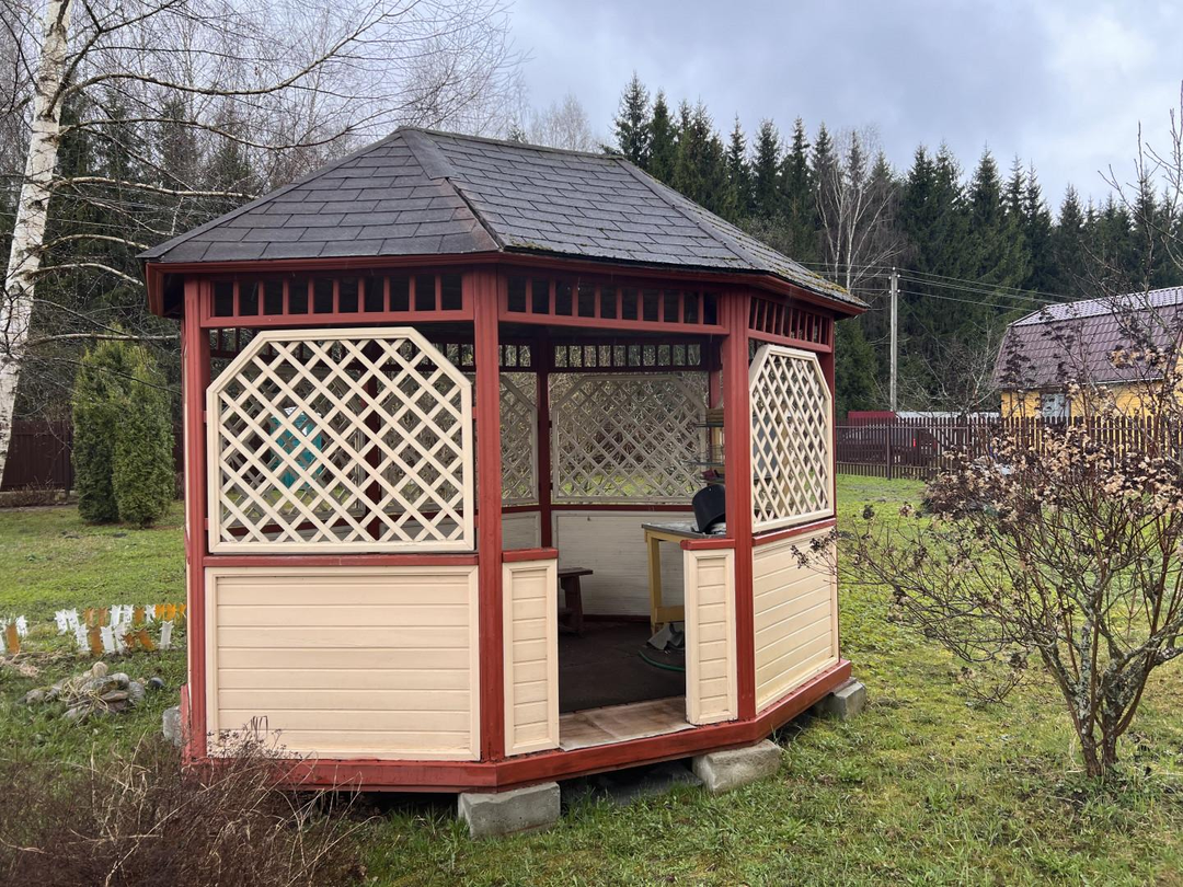 На участке расположены строения: беседка для вечерних посиделок; хоз.блок 18 кв.м. с комнатой отдыха со спальным местом и отдельной комнатой для хранения инвентаря.