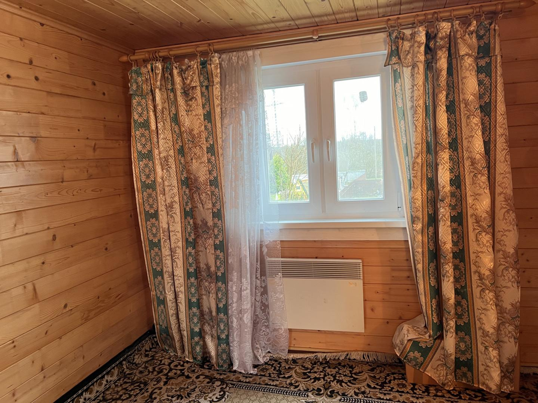 Дом крепкий на высоком бетонном ленточном фундаменте. Окна ПВХ. Крыша - ондулин (еврошифер). Утепление стен - 1 этаж пенопласт (10), 2 этаж -минвата. Отапливается электрическими конвекторами. В доме 3 спальные комнаты. Мебель и техника остается новому владельцу по договоренности. Кухня в отдельно стоящем деревянном строении 16 кв.м. Оборудована кухонным гарнитуром, мойкой (накопительный бак), небольшая газовая плита (баллон). Здесь же в соседнем помещении установлен душ (подача воды из колодца). Туалет на улице (биокабинка), откачивается.