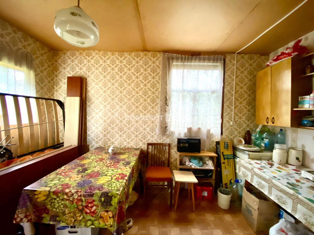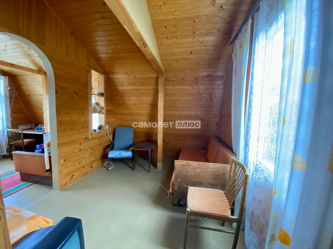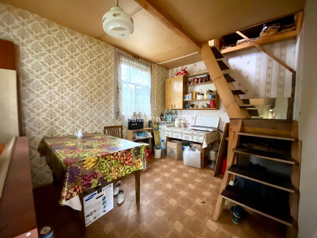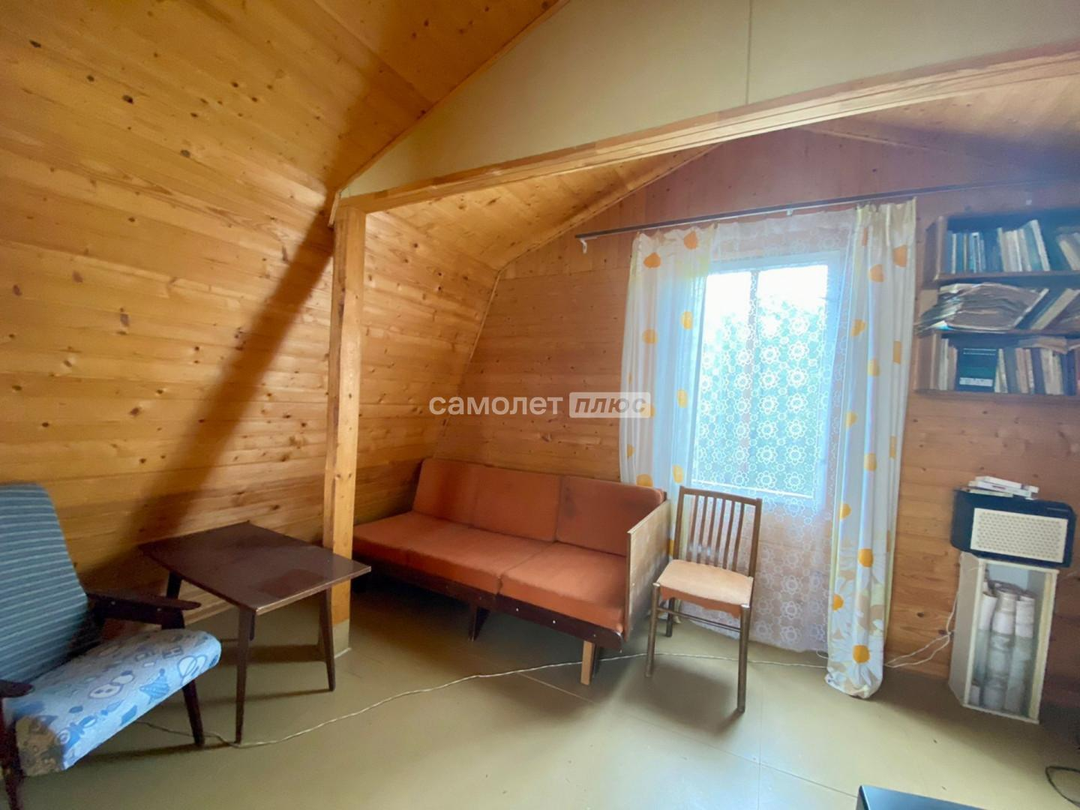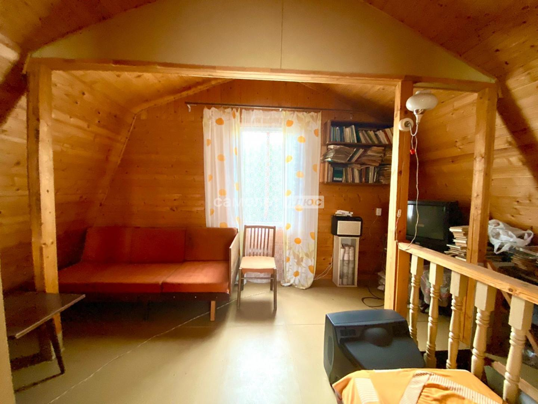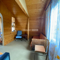 Дом: двух этажный, каркасно-щитовой, выполнен из деревянных материалов. Фундамент из бетонных блоков. Кровля шифер, пол деревянная доска+линолеум/оргалит. На первом этаже: веранда и кухня. На втором этаже: две комнаты.