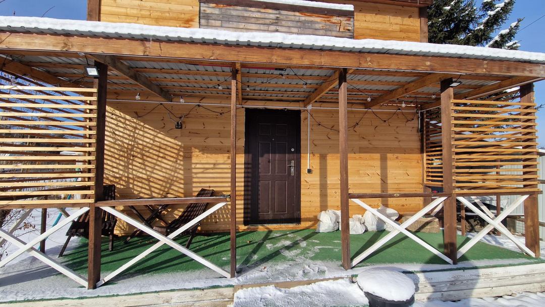 СОСТОЯНИЕ: в дом заведена вода( с мая по октябрь), сделан ремонт, стены покрыты лаком, по всему дому стоят пластиковые окна. По периметру дома и на террасе сделана подсветка с прожекторами.