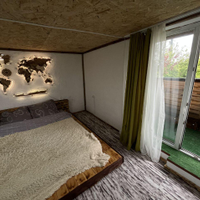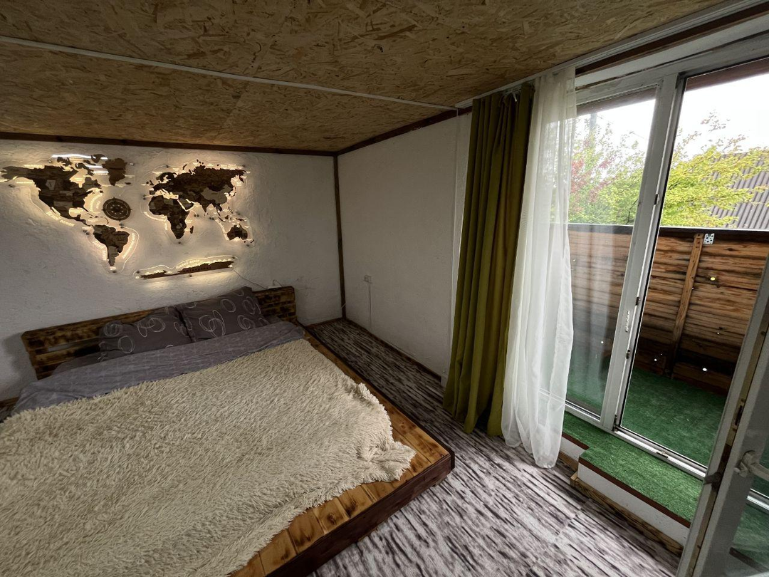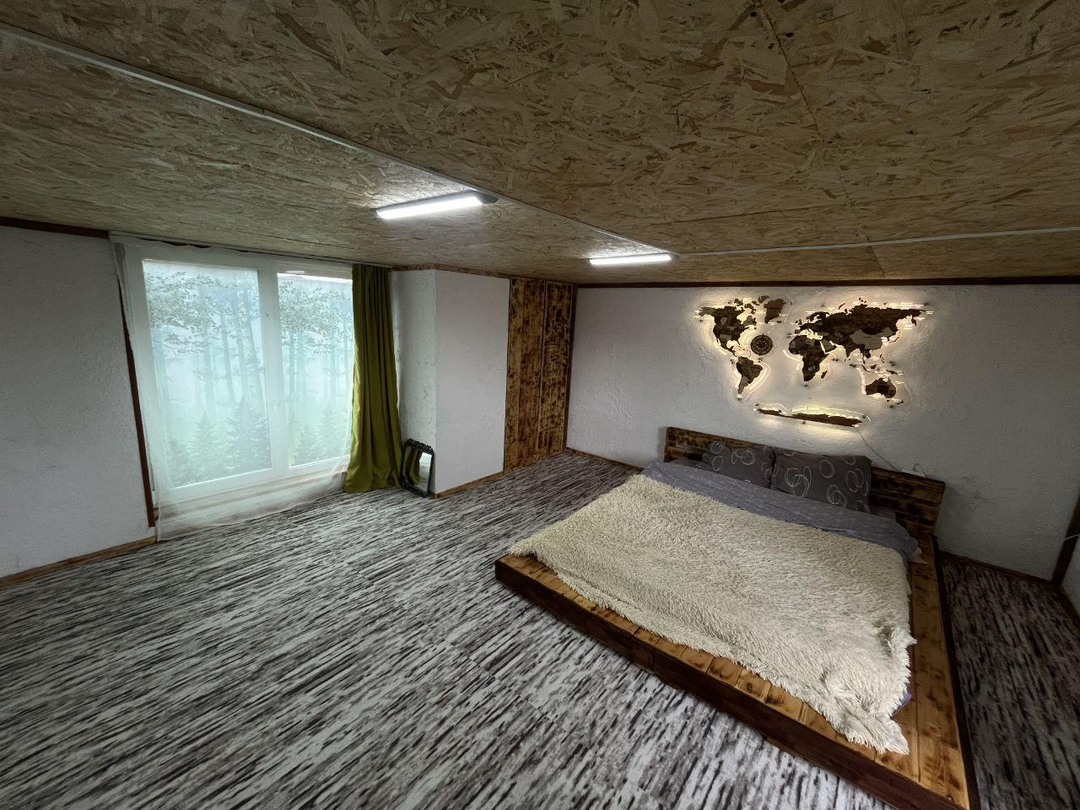 На 2 этаже большая комната со встроенным шкафом и местами для сна, свой выход на балкончик.