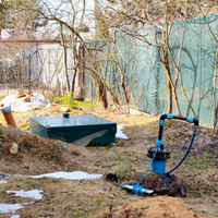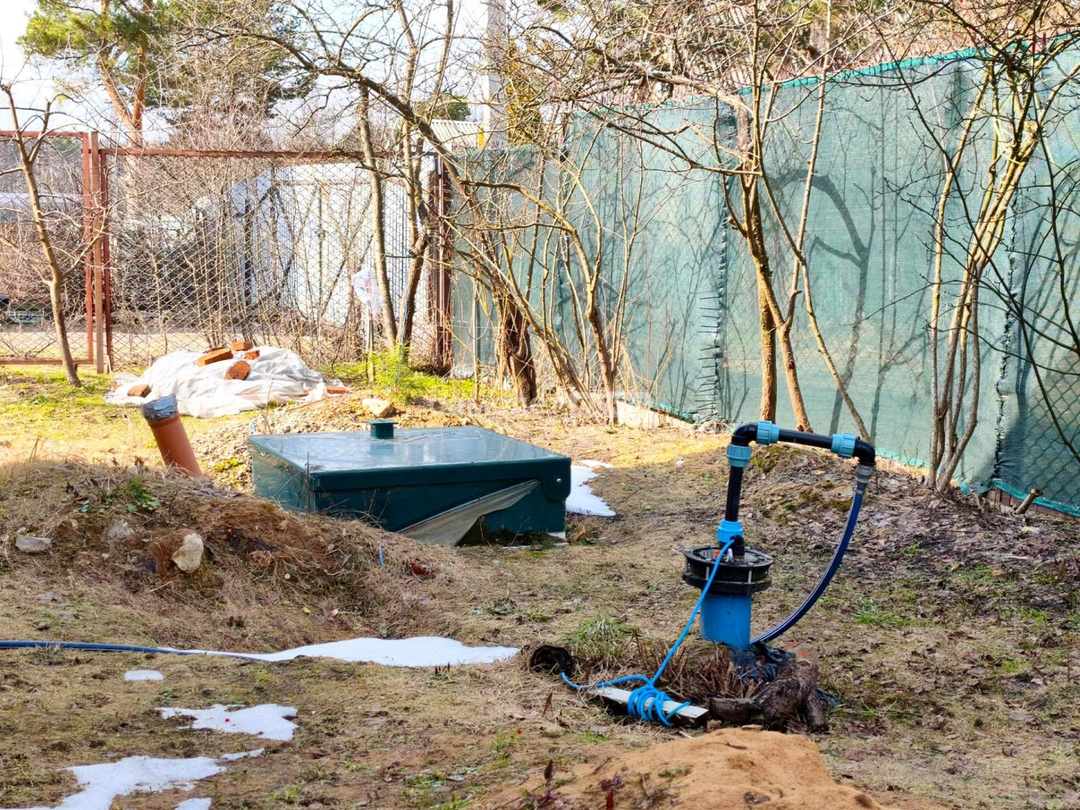 Хозблок с душевой кабиной и бойлером на 80л, накопитель воды на 500л, насосная станция с системой фильтрации.