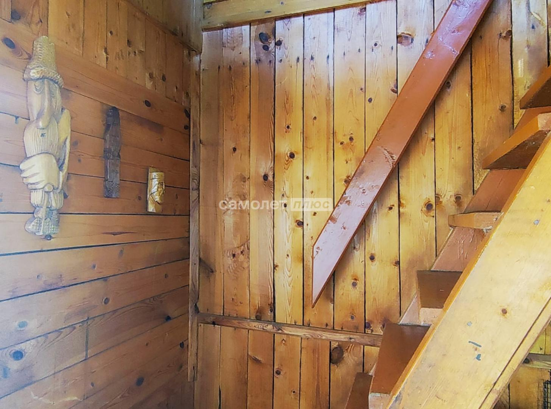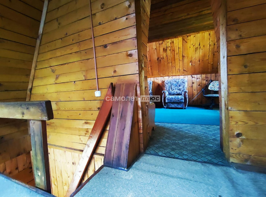 - Построен из бревна и обит сайдингом.