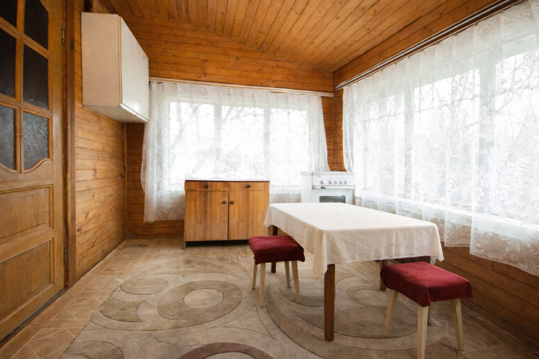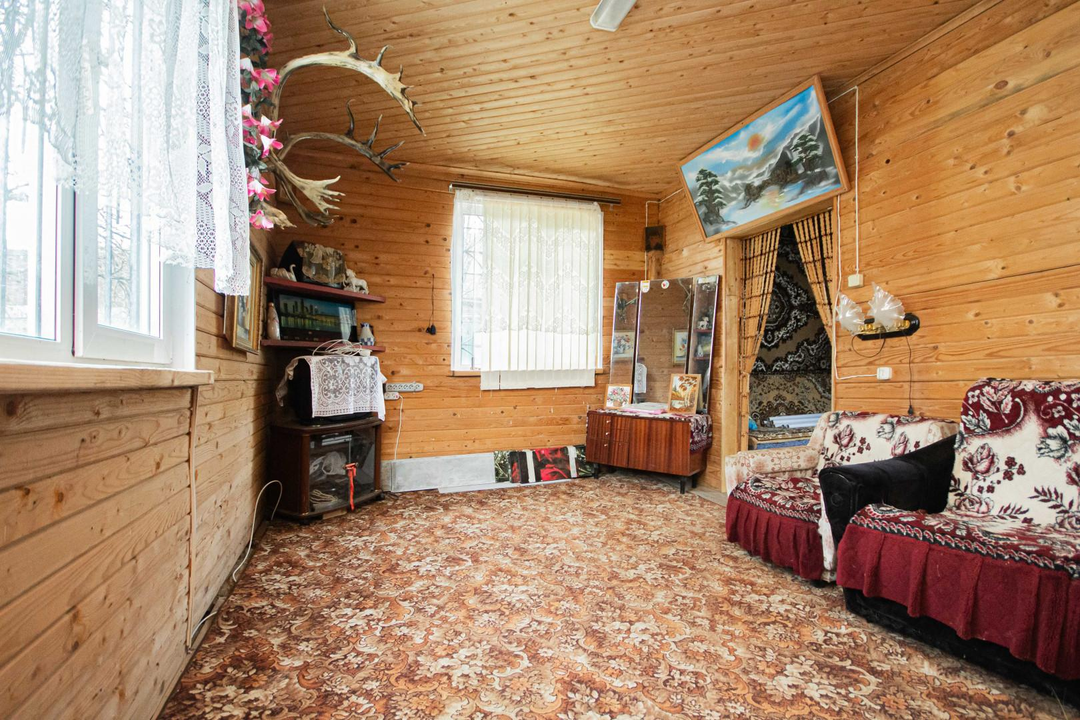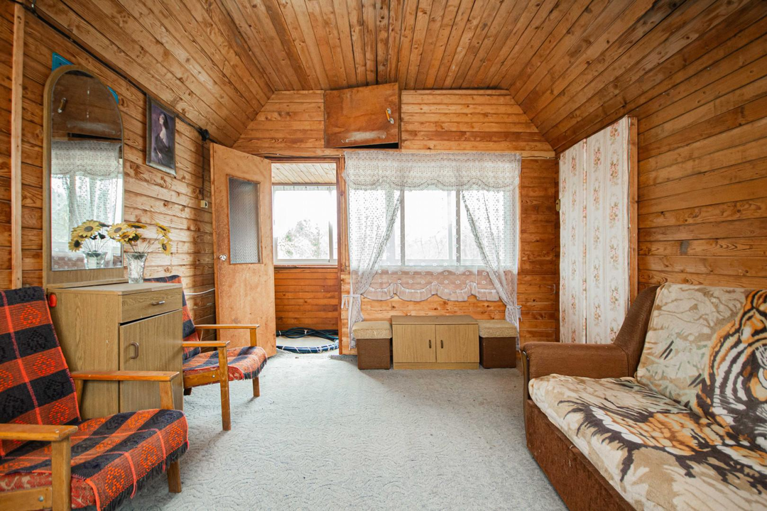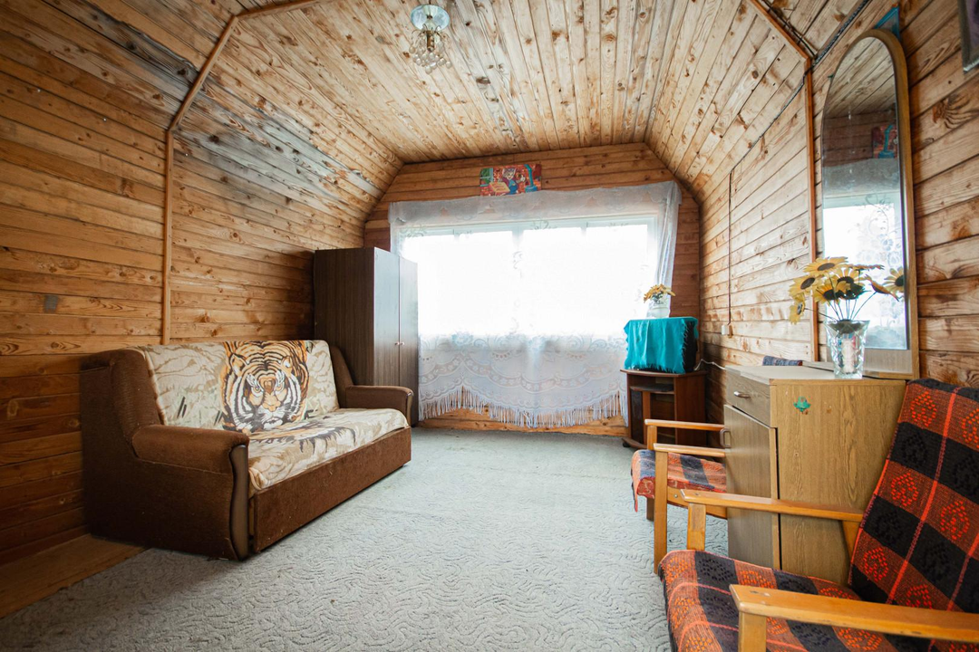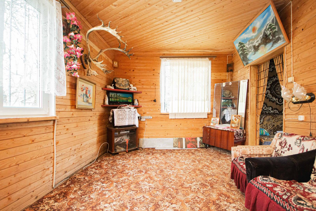 О доме:Площадь: 56 кв.м.Этажность: 2 этажа.Материал стен: брус + каркас (150х150).Фундамент: блочный.Облицовка: сайдинг.Крыша: оцинковка.Не подходит для круглогодичного проживания.Сан/узел: уличный.Состояние: косметический ремонт.Мебель и бытовая техника: остаются после продажи.