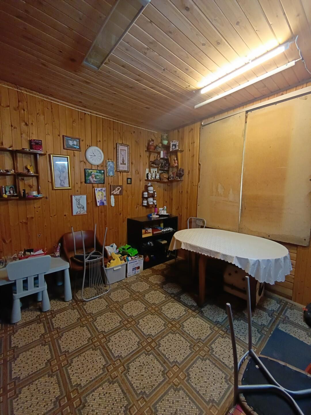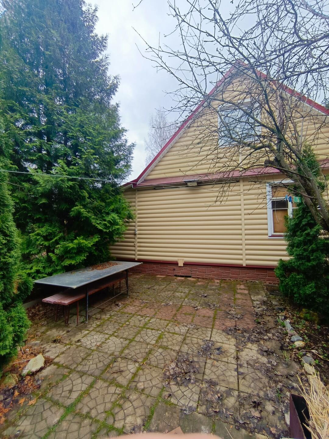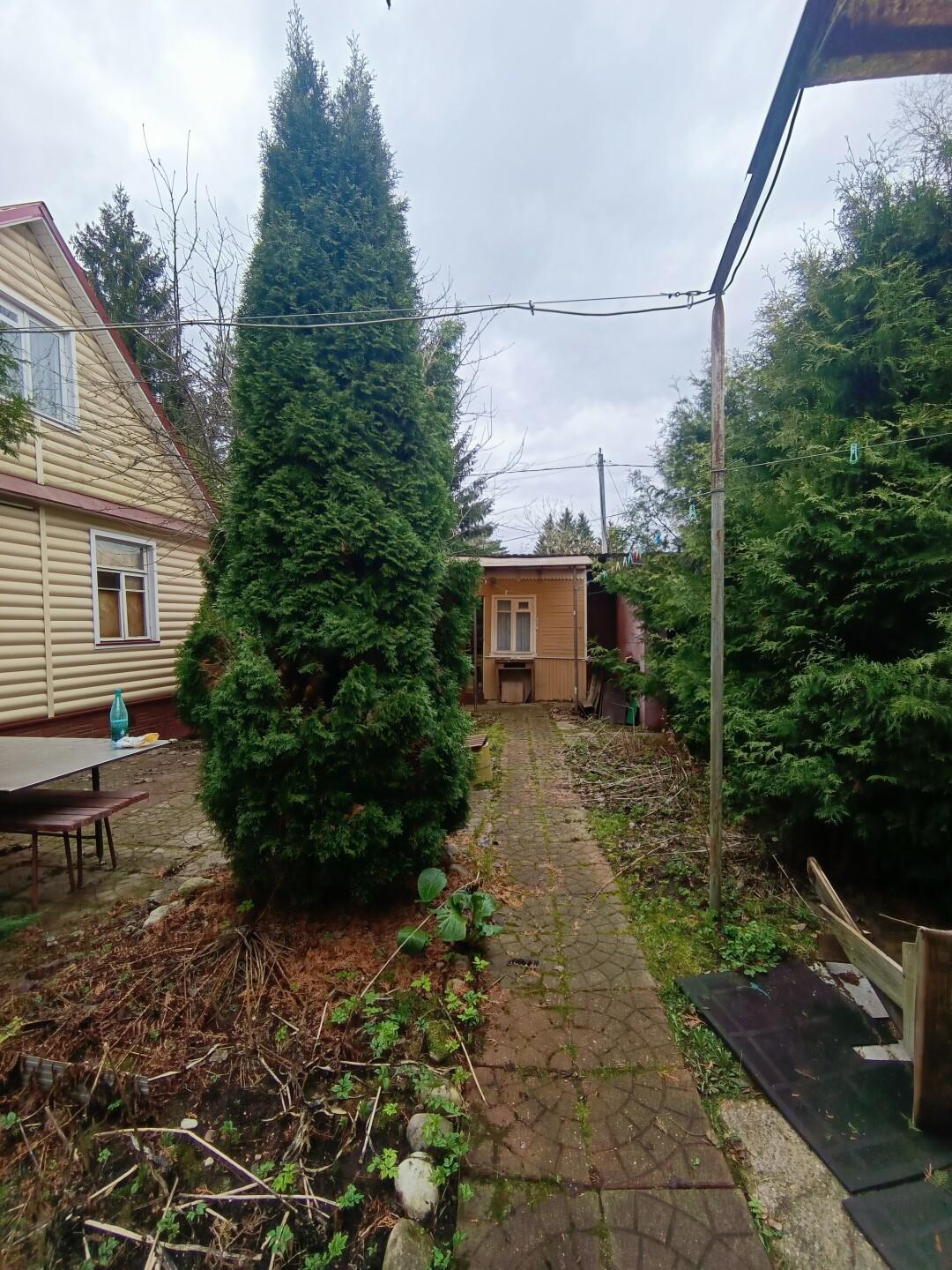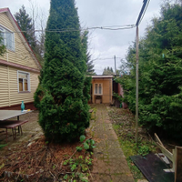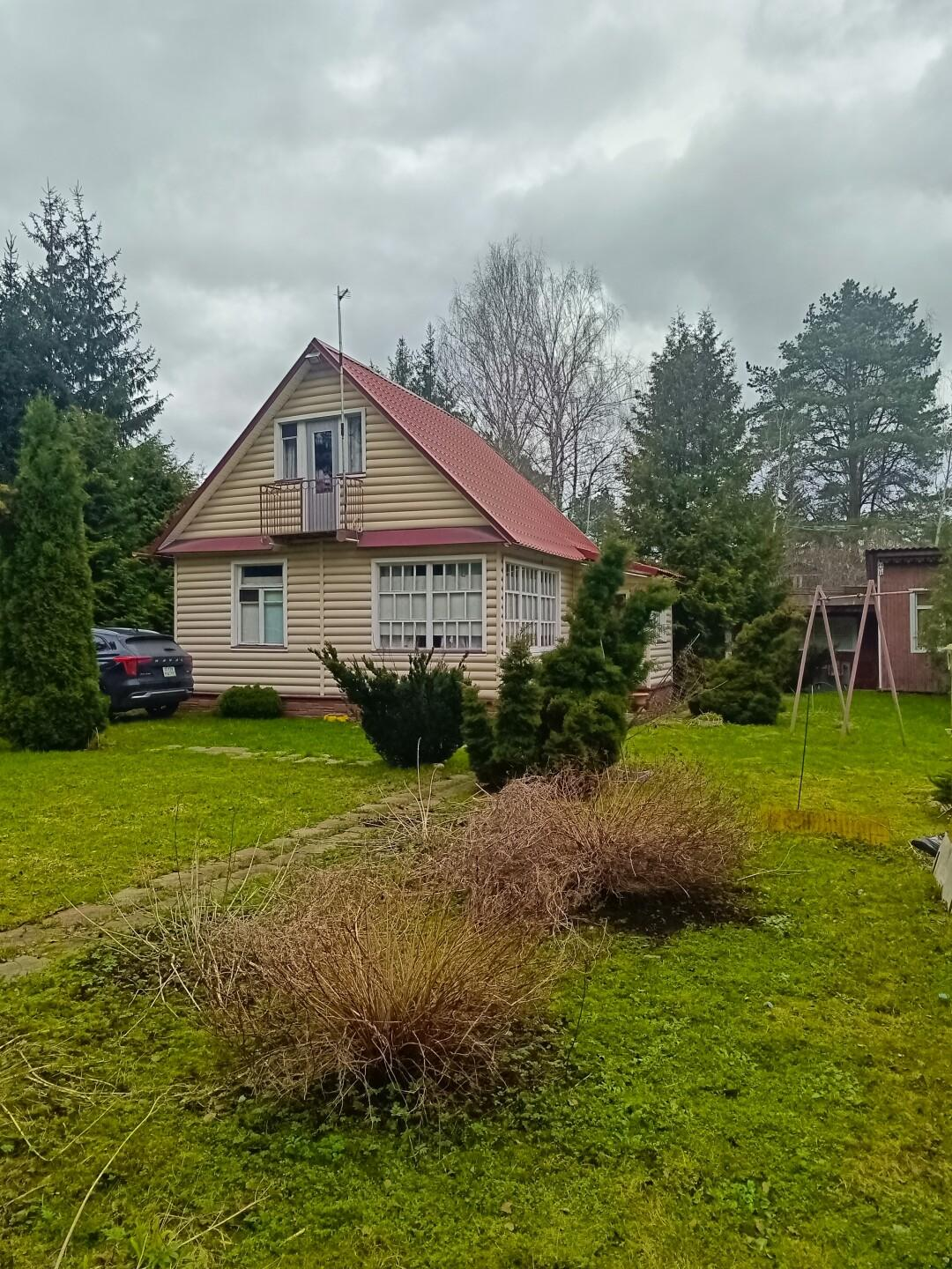 На участке расположен каркасно-щитовой садовый дом площадью 57 кв.м. Имеет капитальный ленточный фундамент, покрыт сайдингом, крыша — металлочерепица. Также на участке имеется большая летняя кухня 20 кв.м. с местом для отдыха, оборудованная мангальная зона, отдельное помещение ванная-прачечная. Гараж 16 кв.м. и хозпомещение для хранения садовых принадлежностей. Электричество полностью разведено по дому и другим помещениям. Отапливается электрическими обогревателями.
