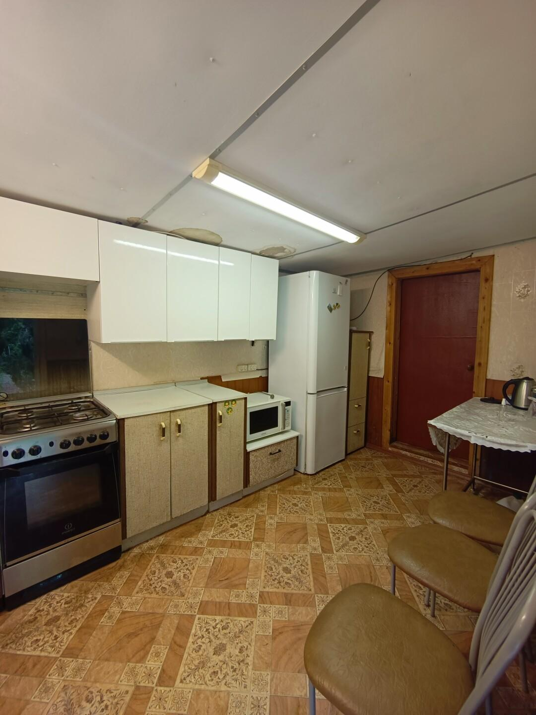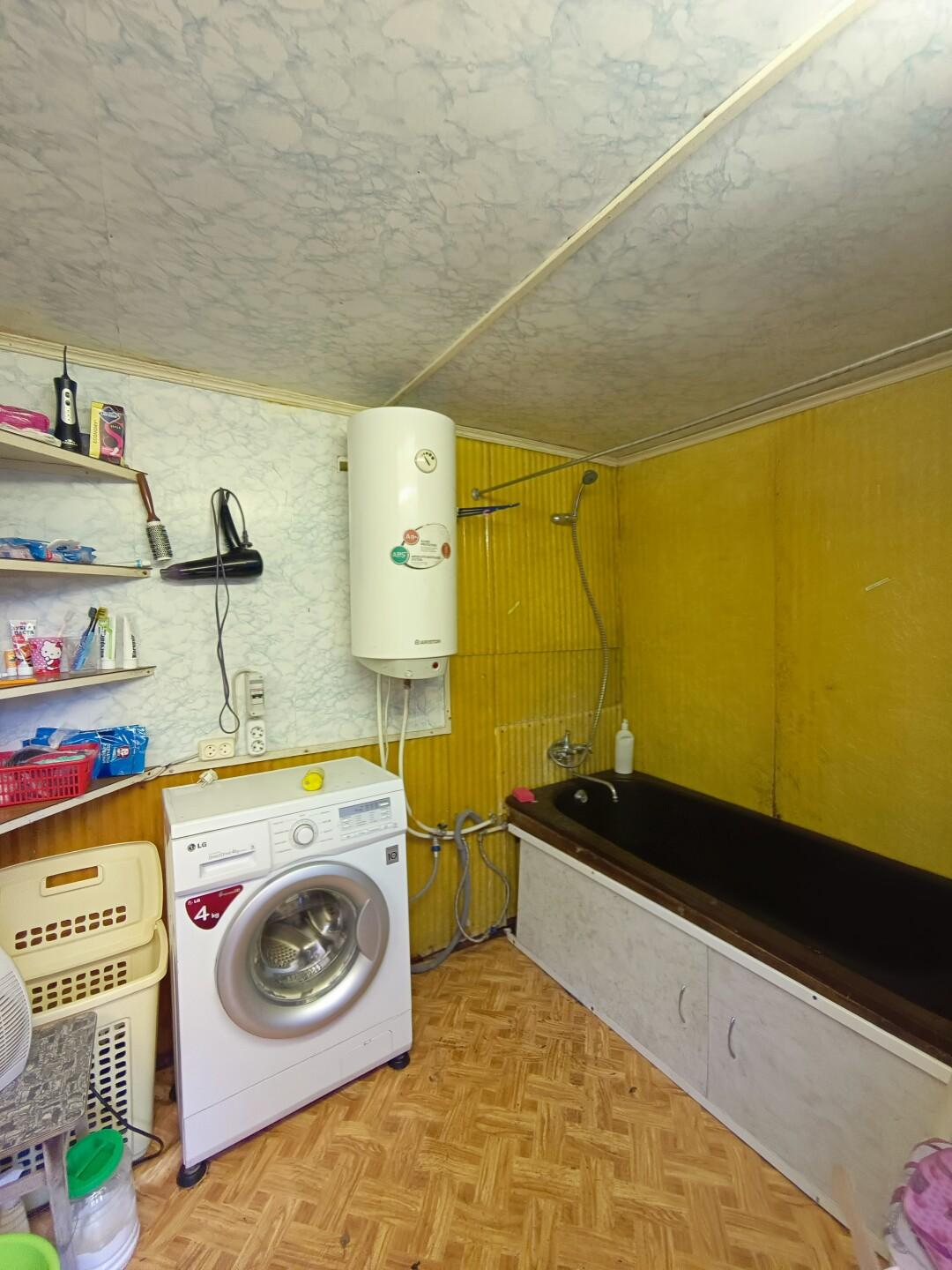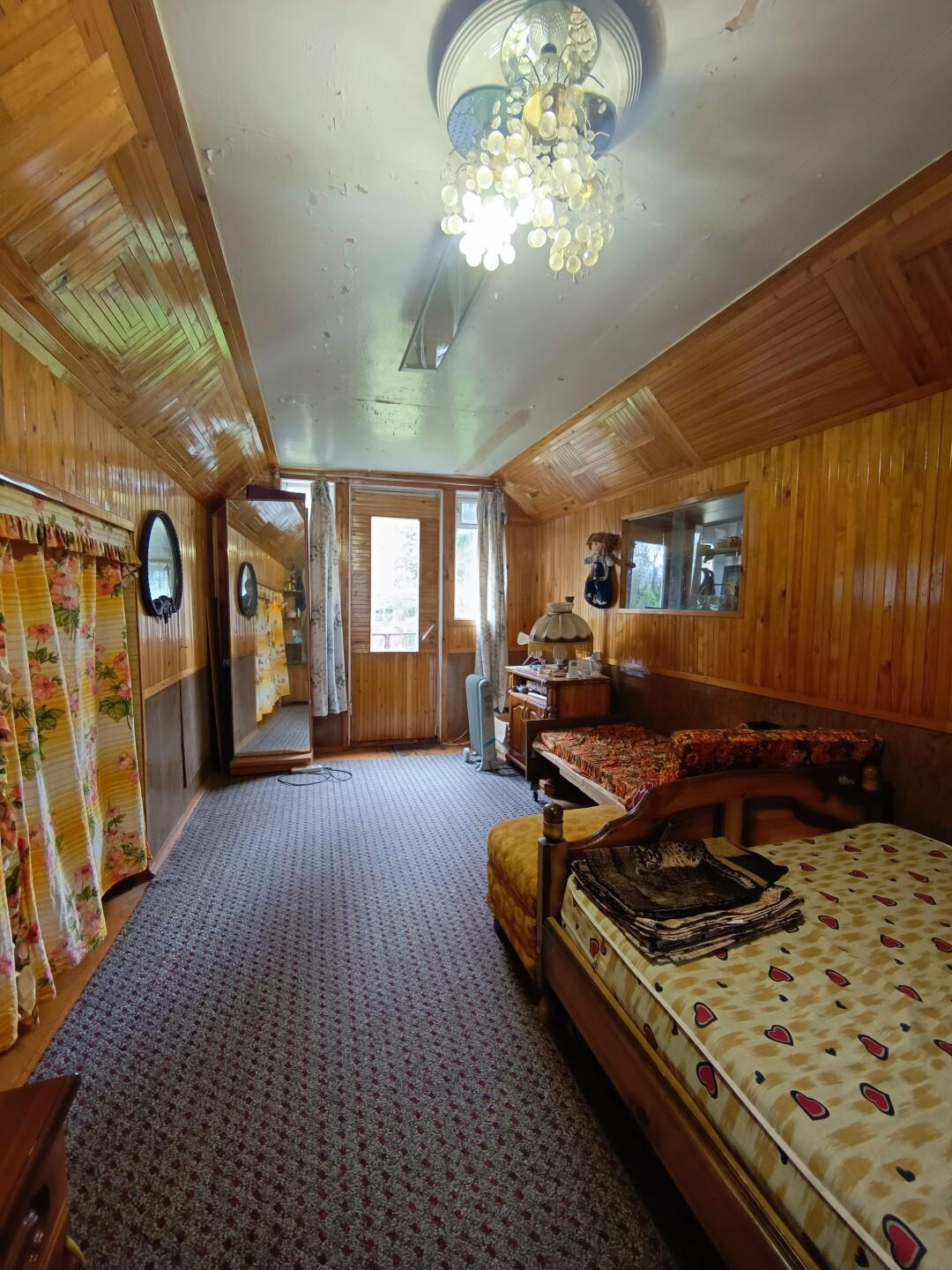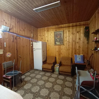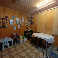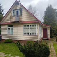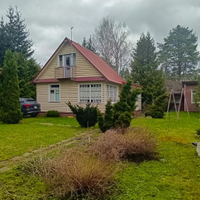 На участке расположен каркасно-щитовой садовый дом площадью 57 кв.м. Имеет капитальный ленточный фундамент, покрыт сайдингом, крыша — металлочерепица. Также на участке имеется большая летняя кухня 20 кв.м. с местом для отдыха, оборудованная мангальная зона, отдельное помещение ванная-прачечная. Гараж 16 кв.м. и хозпомещение для хранения садовых принадлежностей. Электричество полностью разведено по дому и другим помещениям. Отапливается электрическими обогревателями.