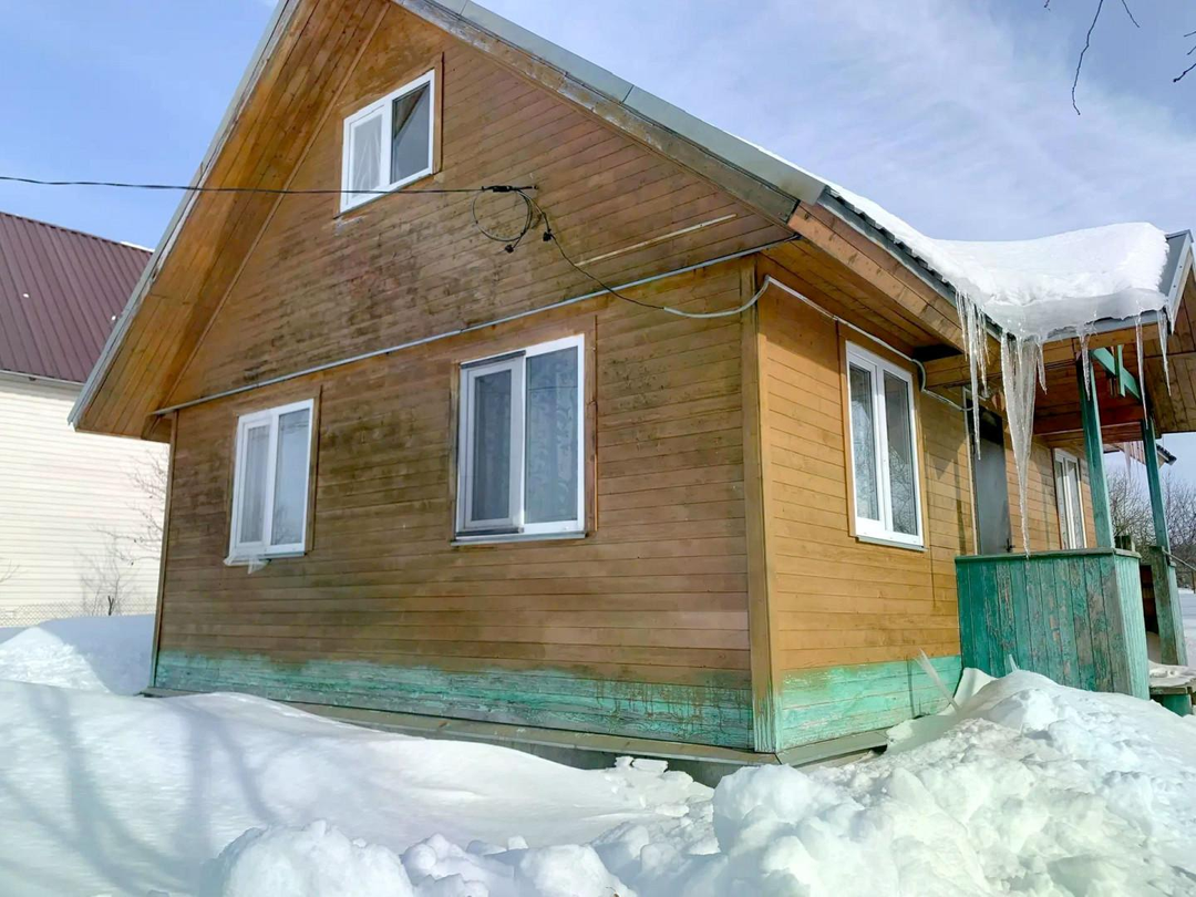 Площадь дома 61,4 м2, на свайном фундаменте, из бруса, двухэтажный, в доме три жилые комнаты, кухня, коридор, удобная лестница на второй этаж.