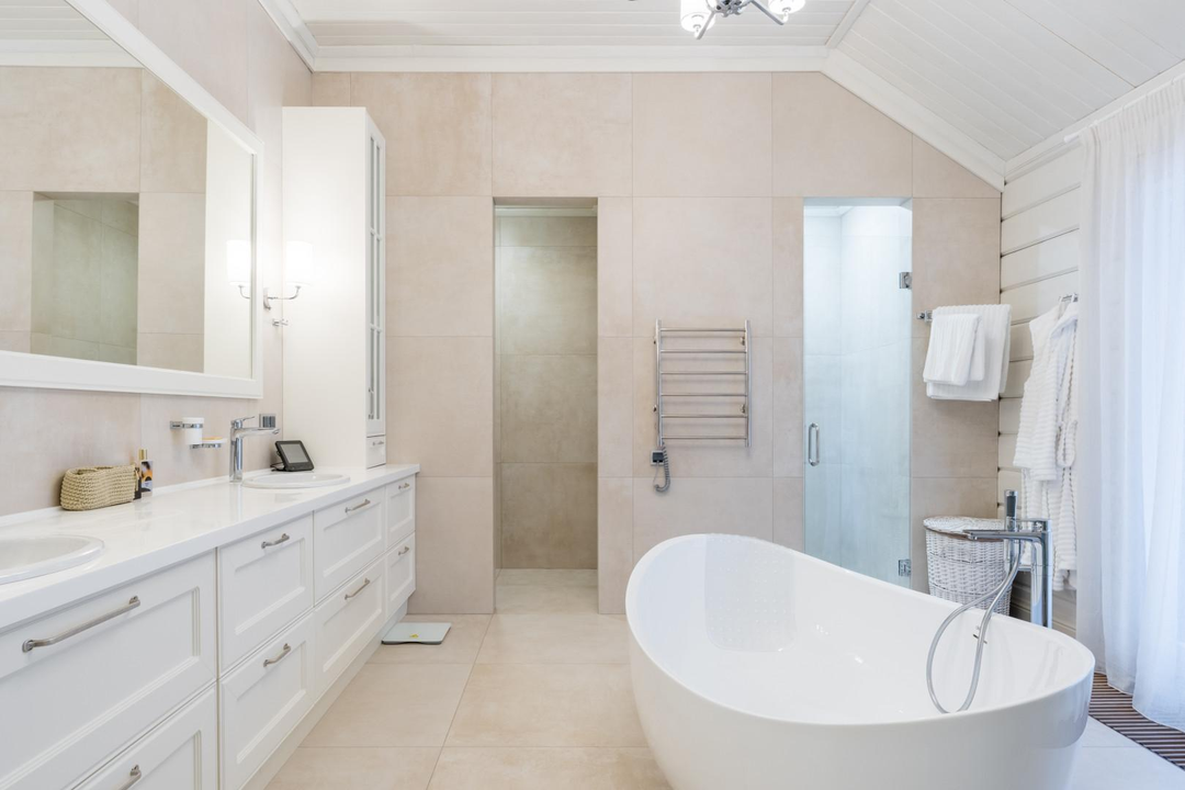 На первом этаже полы с подогревом и напольные радиаторы, второй этаж - инженерная доска.
