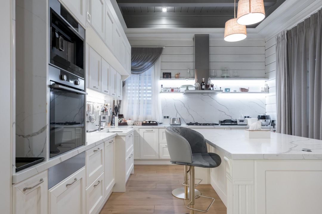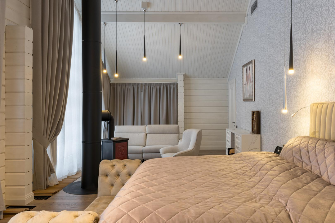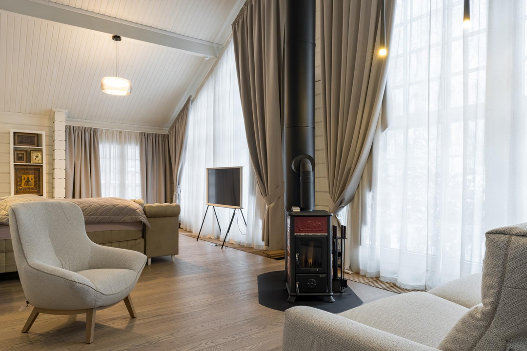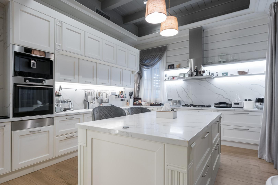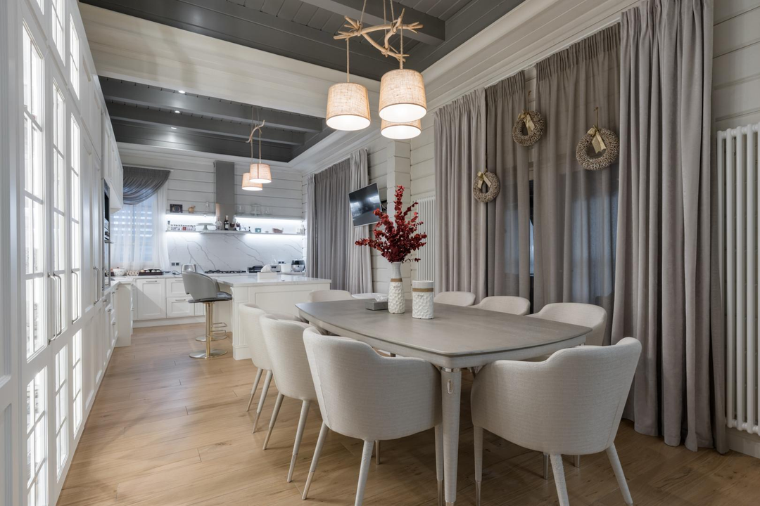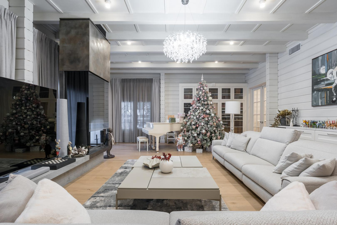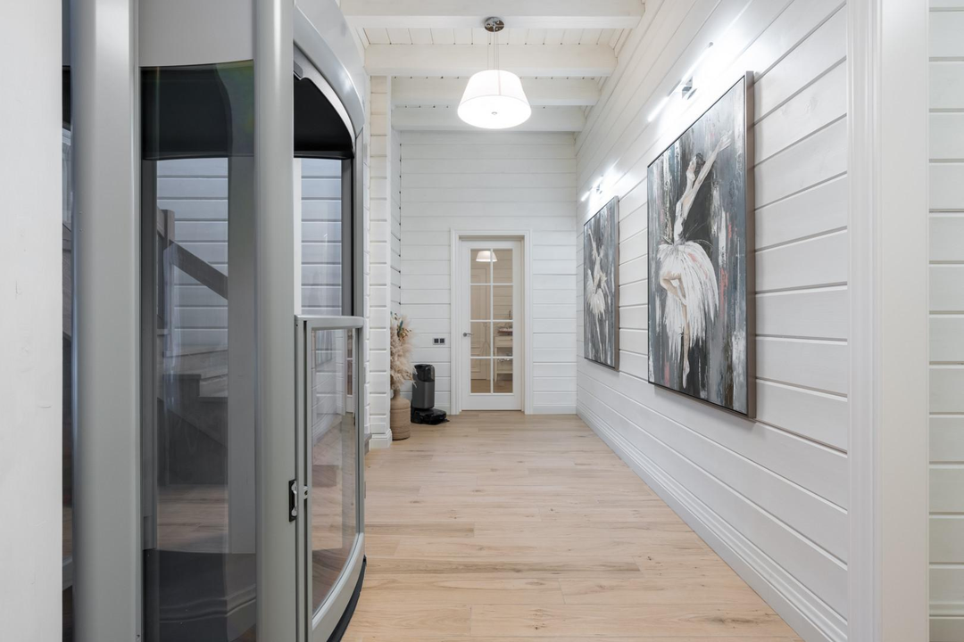 Дом 648 кв.м.: 5 спален, кухня (техника ASKO: вся бытовая техника включая подогрев тарелок) столешницы и фартук - кварцевый агломерат, столовая-гостиная (мебель компании Эстетика), гостиная с камином, кабинет. Максимум воздуха и света, натуральные материалы и продуманная эргономика дома. Для удобства установлен лифт, приточная вентиляция в каждой комнате с системой увлажнения воздуха, умный дом, видеонаблюдение внутри дома.