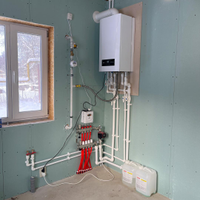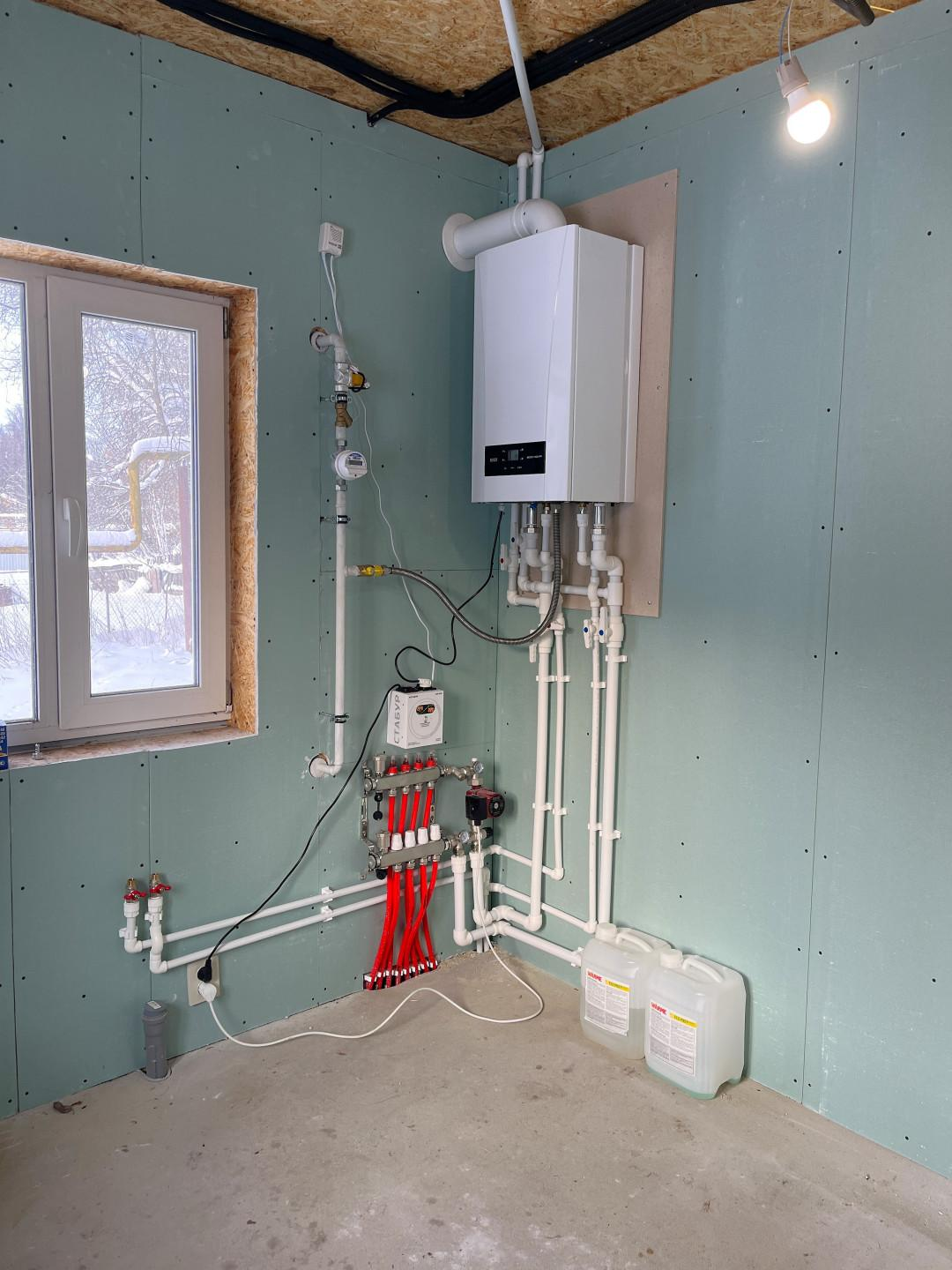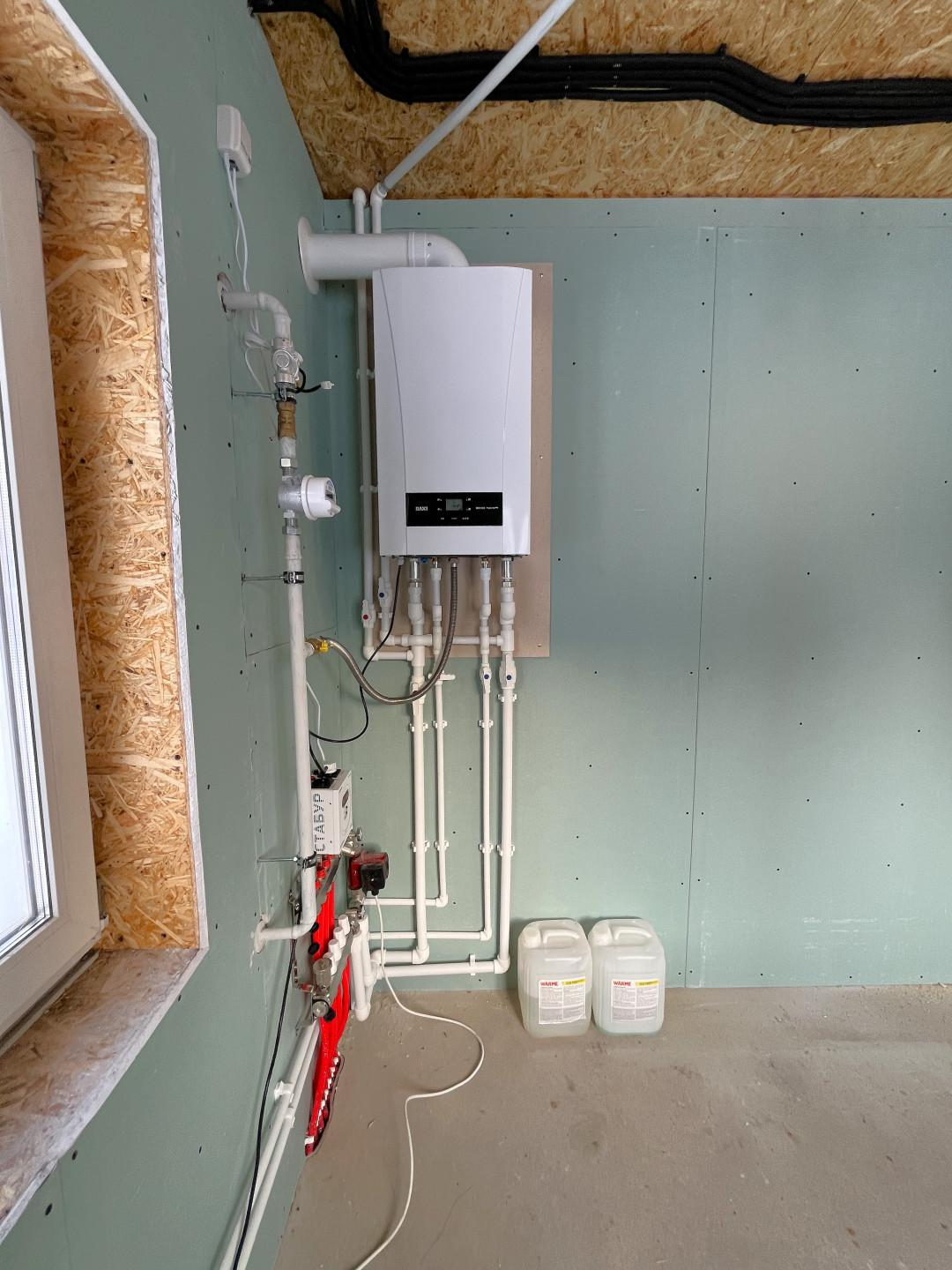 - Отопление и горячая вода от двухконтурного топового газового котла (BAXI)с разводкой радиаторов отопления на втором этаже + система тёплых водяных полов на первом этаже.