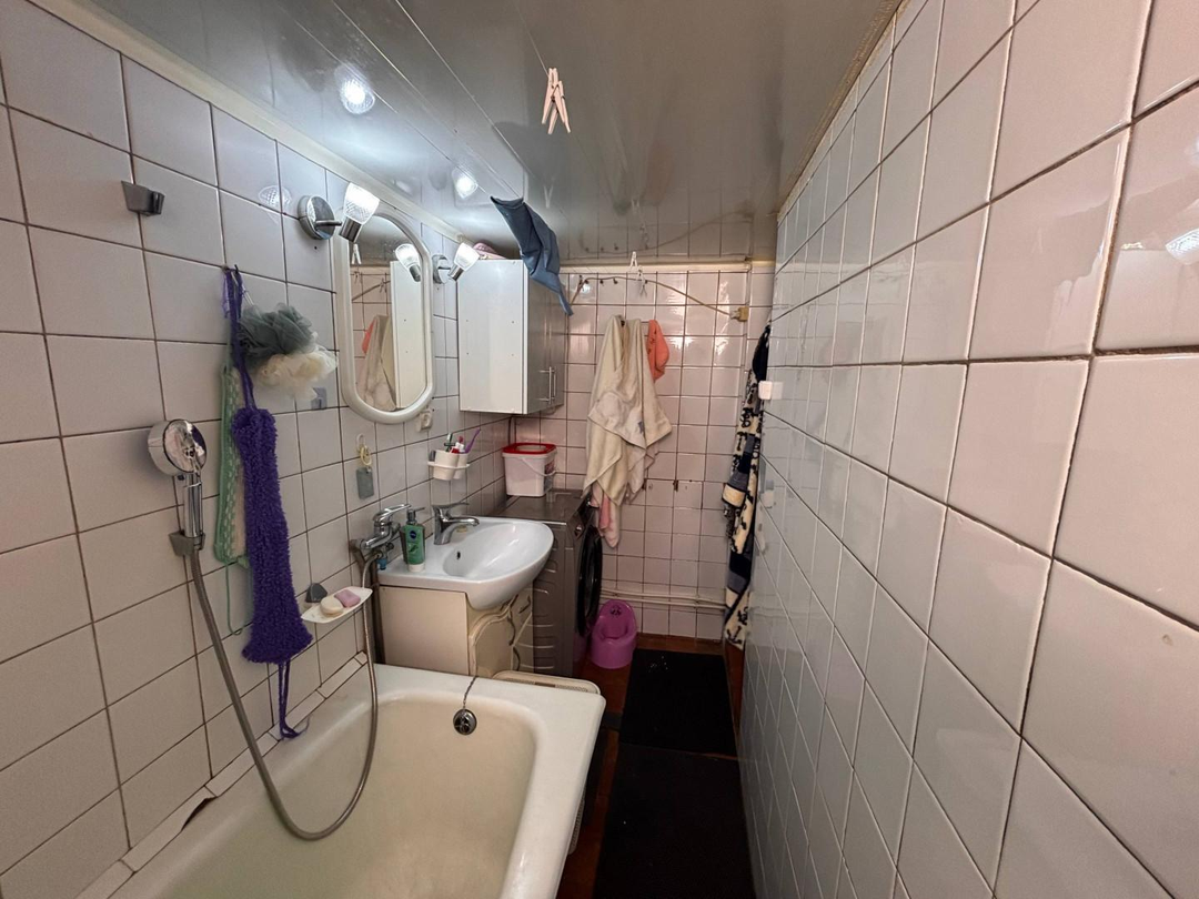 Санузел совмещен,канализация центральная,двухконтурный котел для горячей воды и отопления