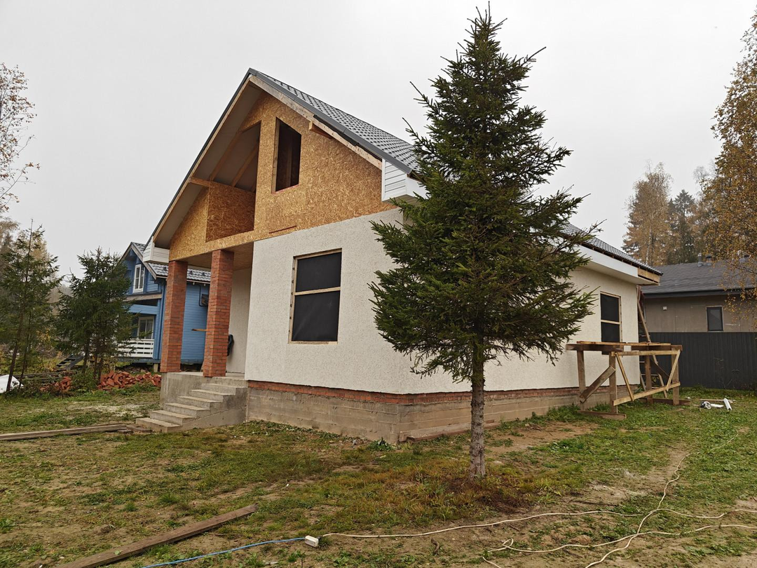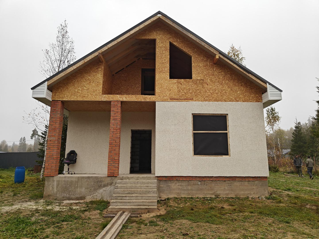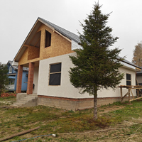 Электричество заведено в дом, остается пробурить скважину и закопать септик. Все закладные заведены.