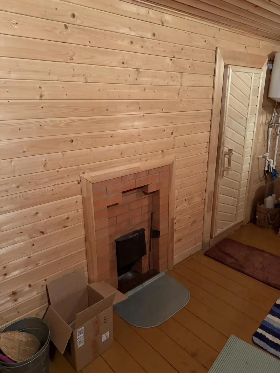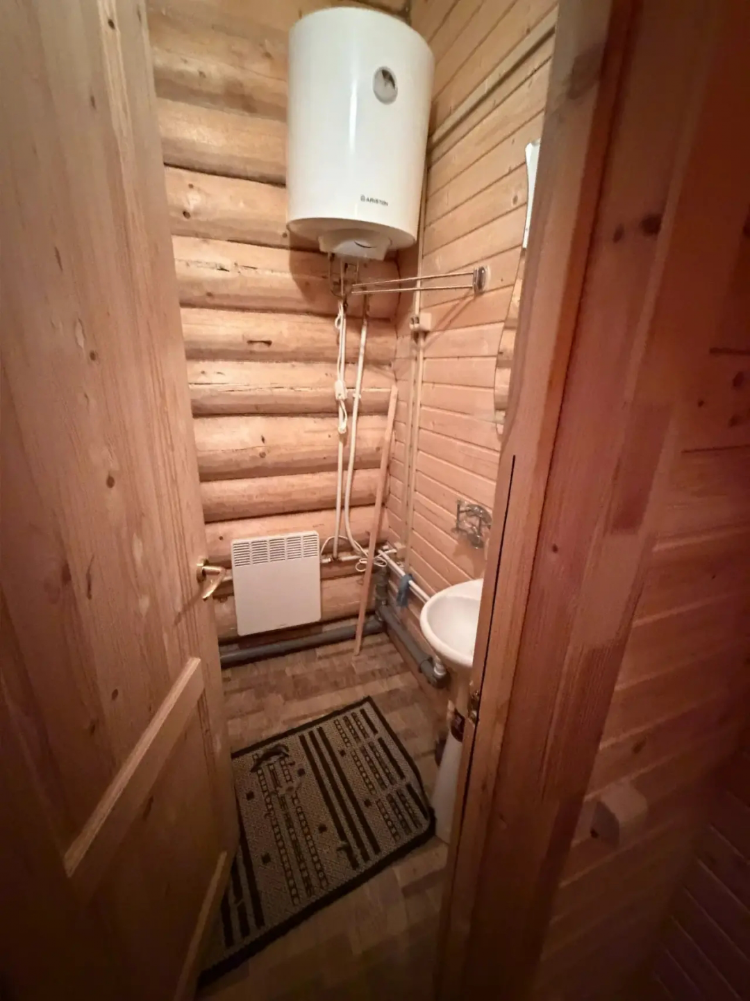 В дом и баню заведена вода, так же установлена душевая кабина. Канализация-септик. горячая вода от водонагревателя.