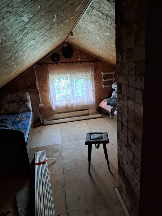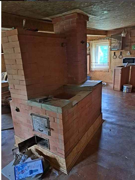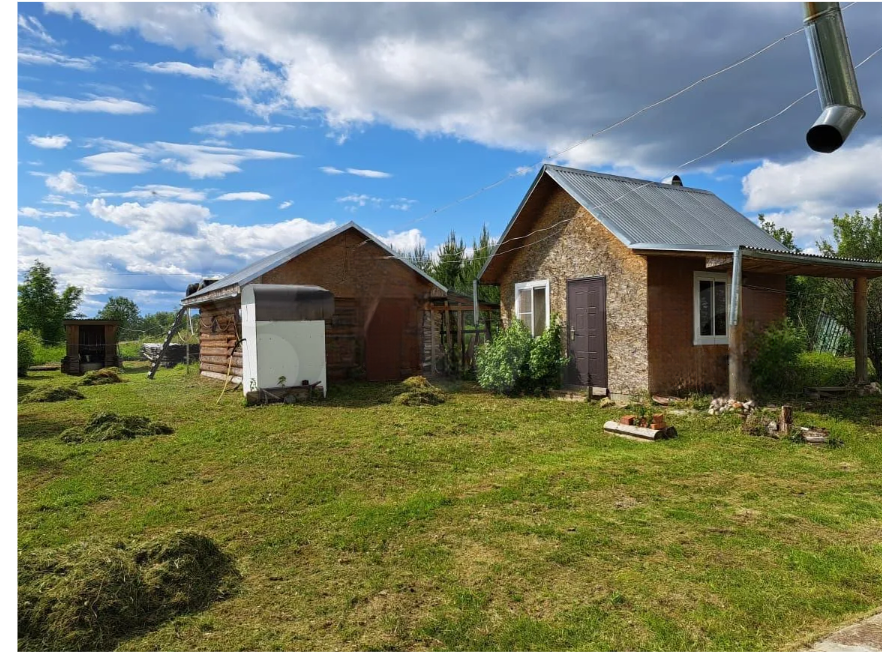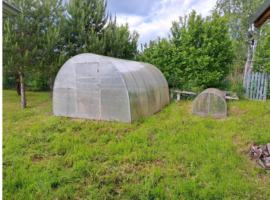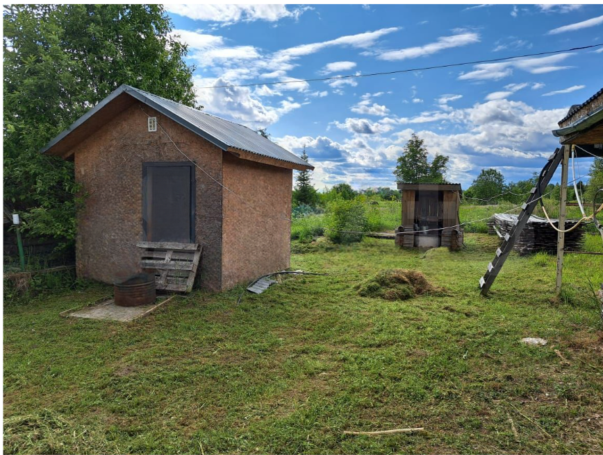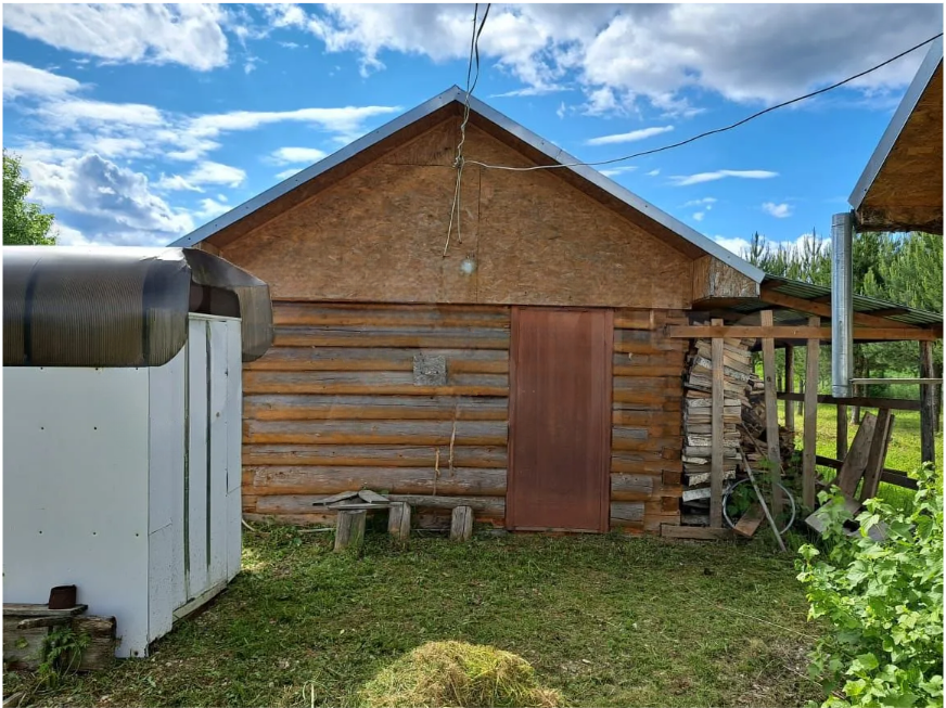 На участке есть гостевой домик каркасный, с печкой из кирпича. Можно обустроить это как домик для отдыха с друзьями в мангальной зоне.