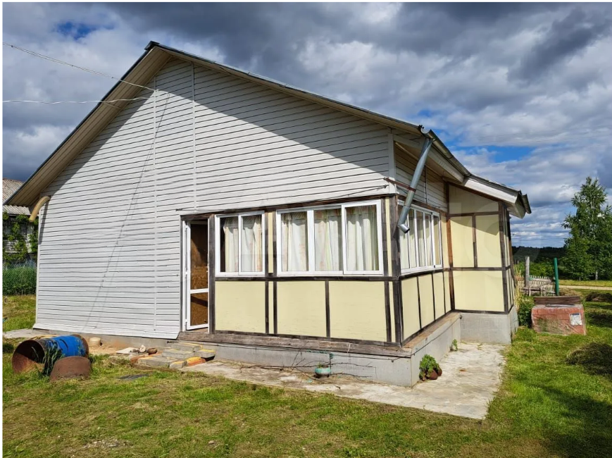 Дом из бревна, обновленный, обшитый сайдингом.