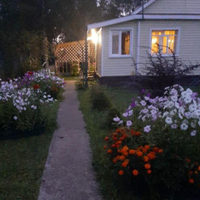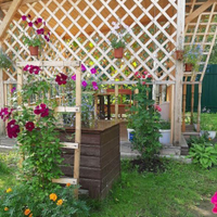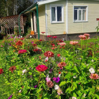 Участок очень ухожен, с большим количеством цветов , есть грядки.