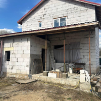Коммуникации: септик - 5 колец, вода - выкопан погреб и залит для скважины, газ - будет проводиться в 2027 году